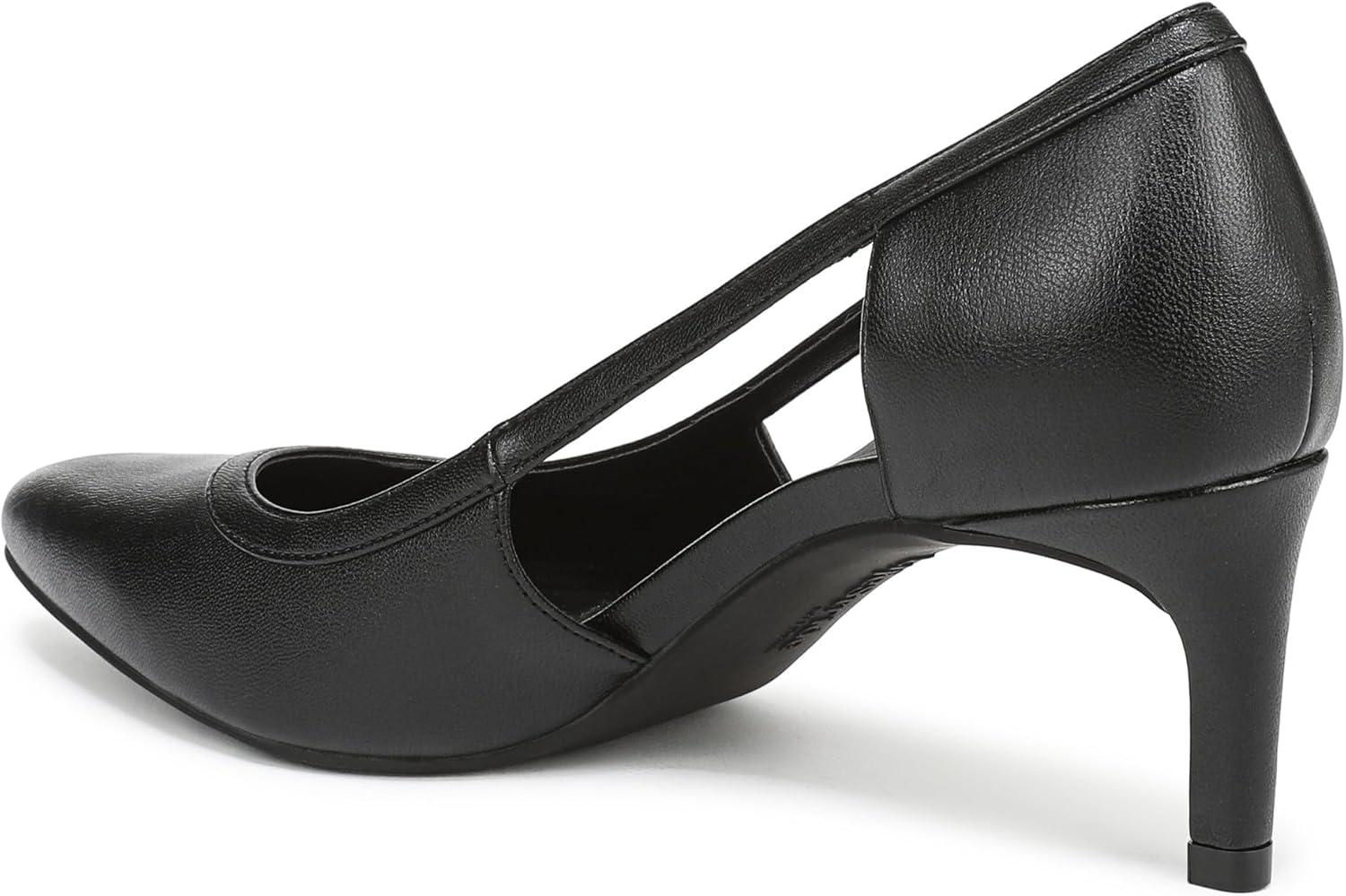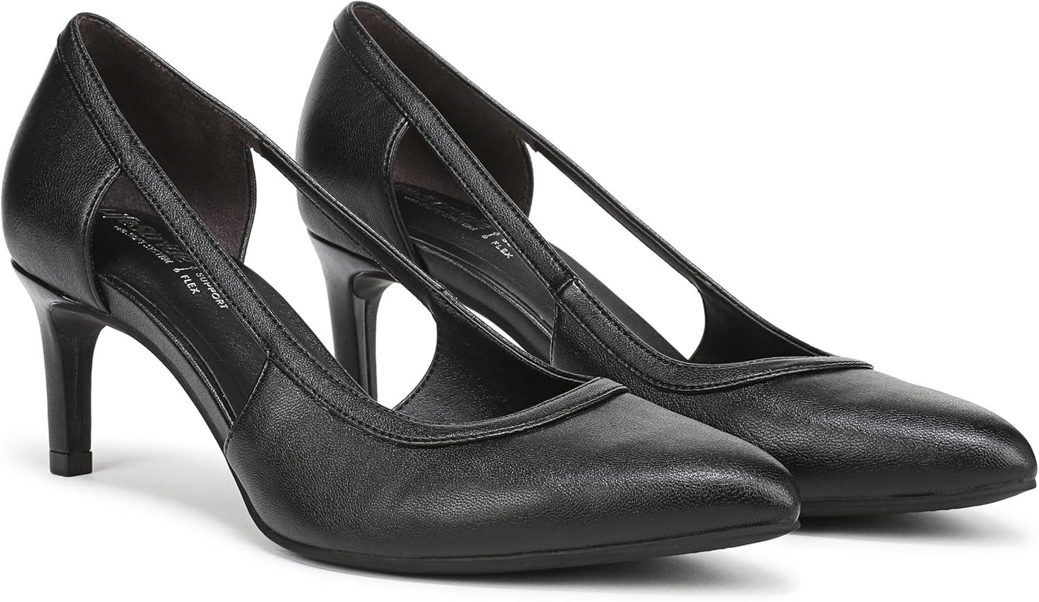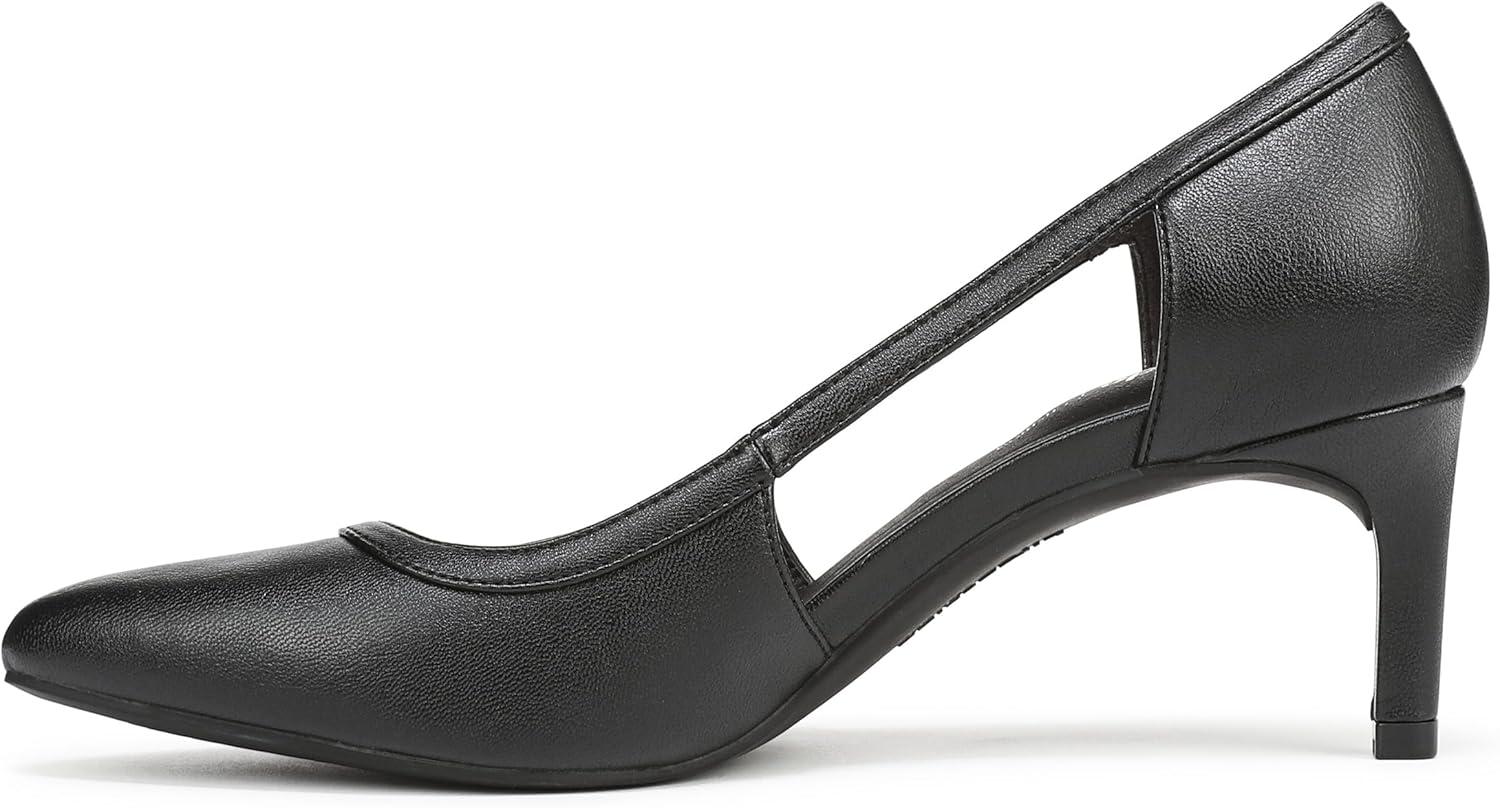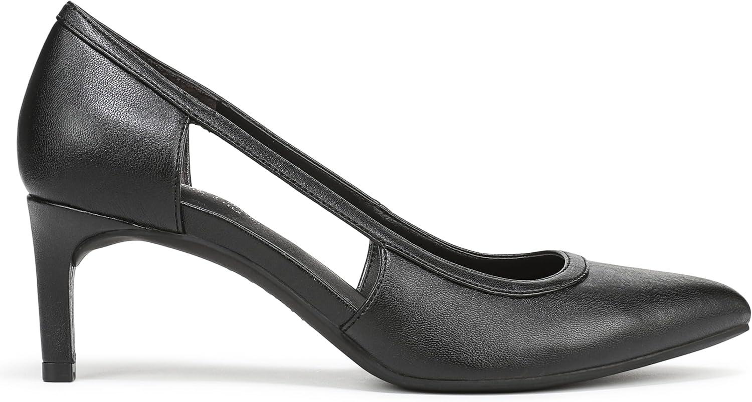 Look chic at the office and beyond in these alluring women’s pumps that show off a little something extra. Faux leather with a softly pointed toe, slip-on fit, and side cutout details. Trusted Soft System® comfort technology for unmatched cushion, support, and flexibility in every pair. Traction sole provides you with extra stability. Just Right Height 2 3/8 inch heel.