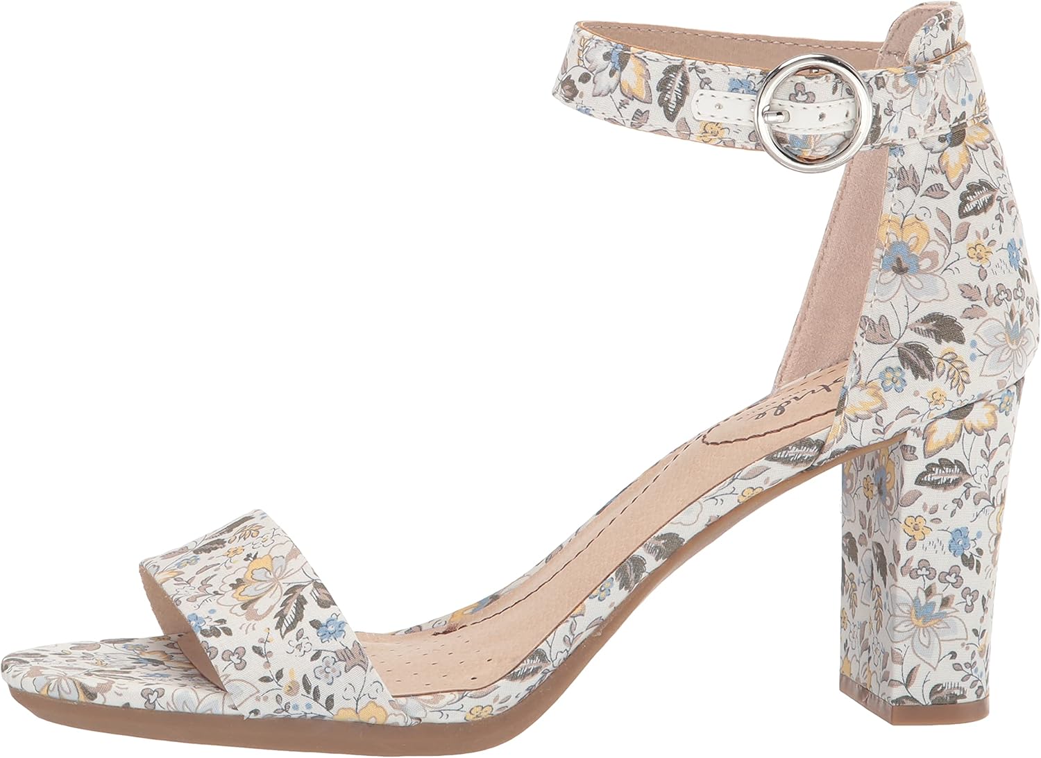 Hello, heels. This block heel sandal with chic straps is the epitome of cool + elevated comfort. Sparkly faux leather, fabric, or faux leather upper with an open round toe, ankle strap with adjustable metallic buckle closure, and block heel. Soft System® comfort package provides all-day support, flex, and cushioning. Traction sole provides you with extra stability. Just Right Height 3 inch block heel.