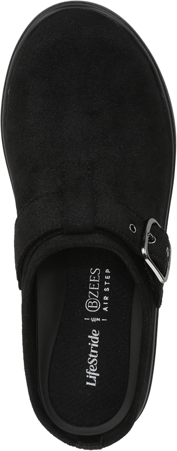 Find your balance! These effortless + everyday clogs give you the comfort you deserve. Stretch fabric or engineered knit upper with a round toe and decorative buckle. BZEES Air Step Technology: Designed so you’ll feel weightless, energized and free. Ultra Lightweight: Step lightly with a nearly weightless feel. Dynamic Stretch Fabrics: Move freely in shoes with built-in stretch. FreeFoam™ Comfort: Low pressure insoles with maximum foot contact and cushy arch support. Anti-Microbial and Odor Control technology. 5/8 inch platform, 1 1/2 inch heel. Machine Washable: Wash on cold and air dry.