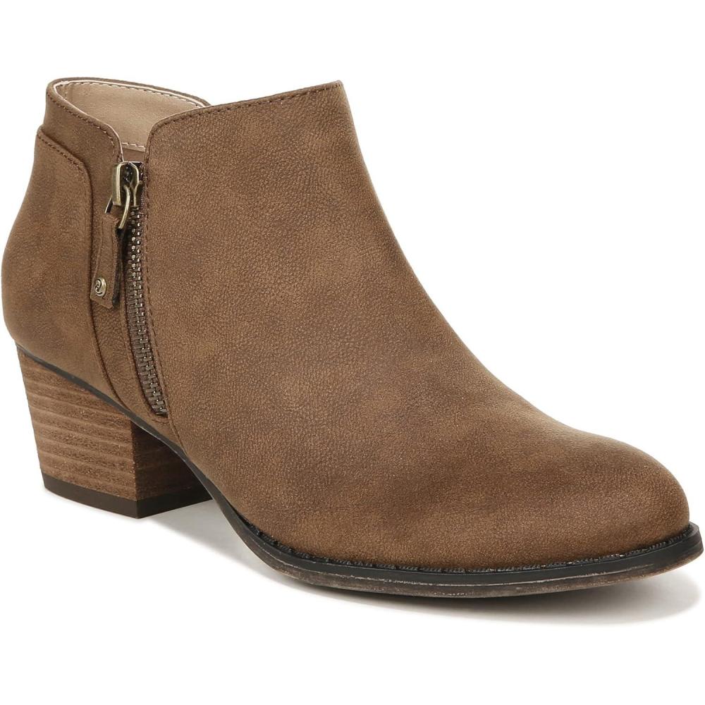 Get the Western trend and make it work for you in these comfortable ankle boots for women. Faux leather upper with a round toe, metallic decorative outside zip, and functional inside zip. Linings partially crafted with recycled materials. Soft System® comfort package provides all-day support, flex, and cushioning. Traction sole provides you with extra stability. Just Right Height 1.625 inch stacked block heel.