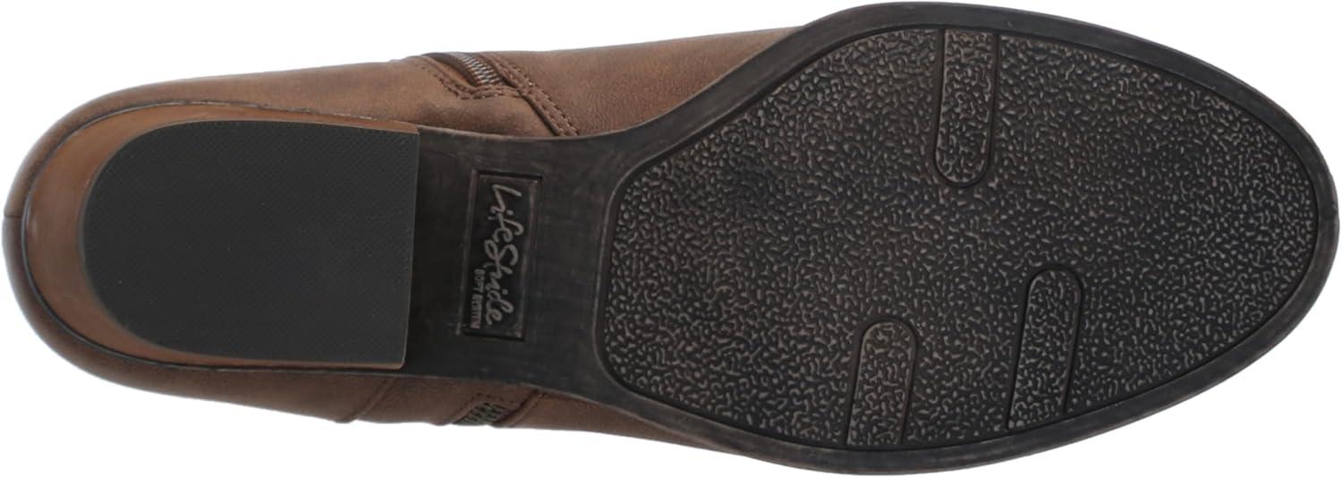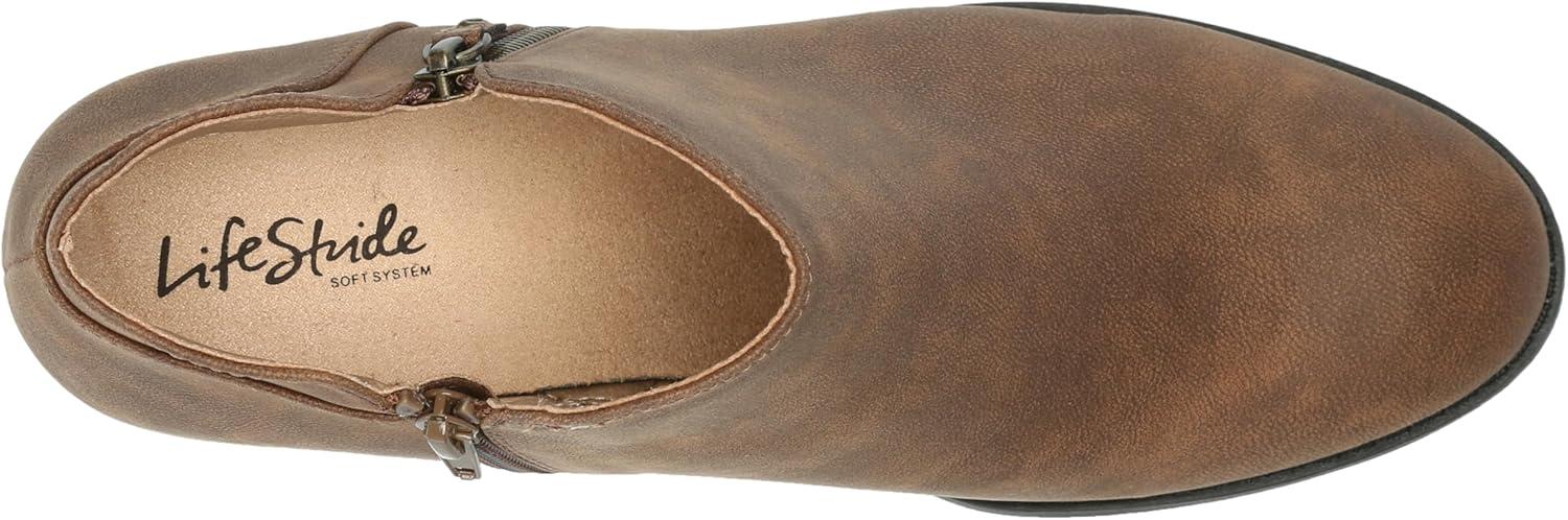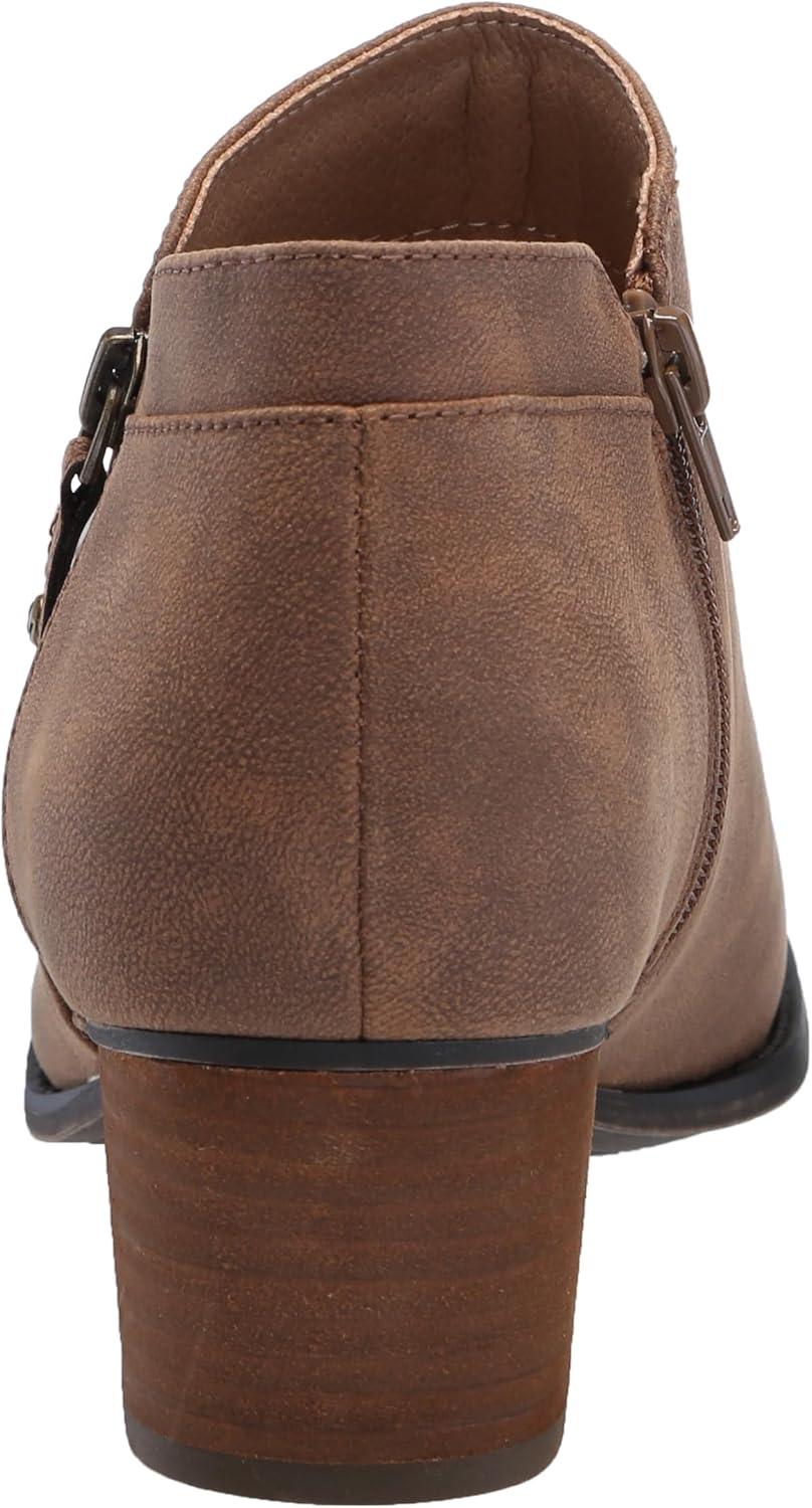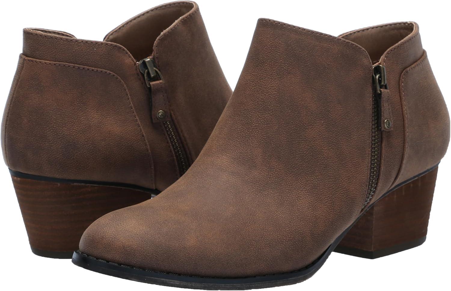 Get the Western trend and make it work for you in these comfortable ankle boots for women. Faux leather upper with a round toe, metallic decorative outside zip, and functional inside zip. Linings partially crafted with recycled materials. Soft System® comfort package provides all-day support, flex, and cushioning. Traction sole provides you with extra stability. Just Right Height 1.625 inch stacked block heel.