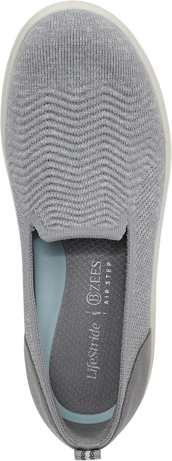 Catch a wave of comfort! Step into these classic slip ons with a lightweight fit and wavy design. Stretch engineered knit upper with a round toe and back pull tab. BZEES Air Step Technology: Designed so you’ll feel weightless, energized and free. Ultra Lightweight: Step lightly with a nearly weightless feel. Dynamic Stretch Fabrics: Move freely in shoes with built-in stretch. FreeFoam™ Comfort: Low pressure insoles with maximum foot contact and cushy arch support. Anti-Microbial and Odor Control technology. 5/8 inch platform, 1 1/2 inch heel. Machine Washable: Wash on cold and air dry.