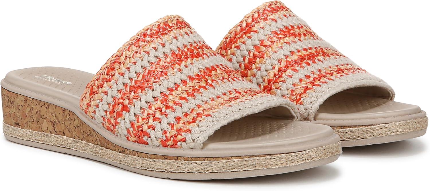 LifeStride womens Breezy(Coral/Tan Raffia)