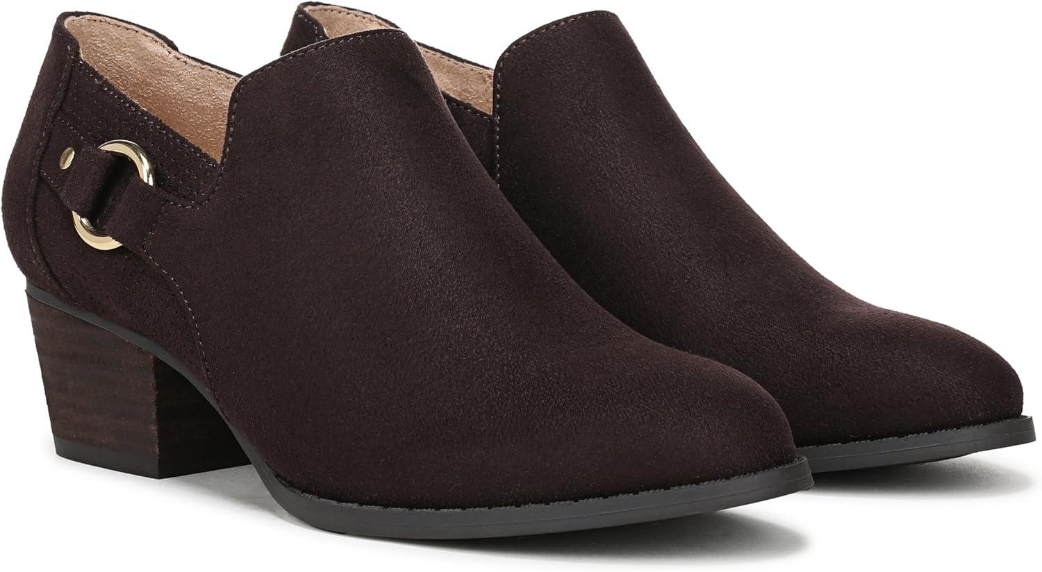 Be ready for anything in these women’s ankle booties with all-day comfort and versatile styling. Mircosuede fabric upper with a round toe, side zipper, and metallic ring detail. Trusted Soft System® comfort technology for unmatched cushion, support, and flexibility in every pair. Traction sole provides you with extra stability. Just Right Height 1 7/8 inch block heel.