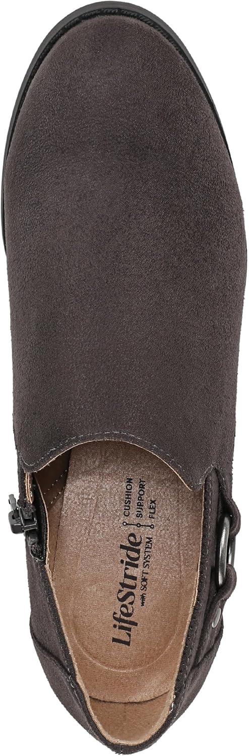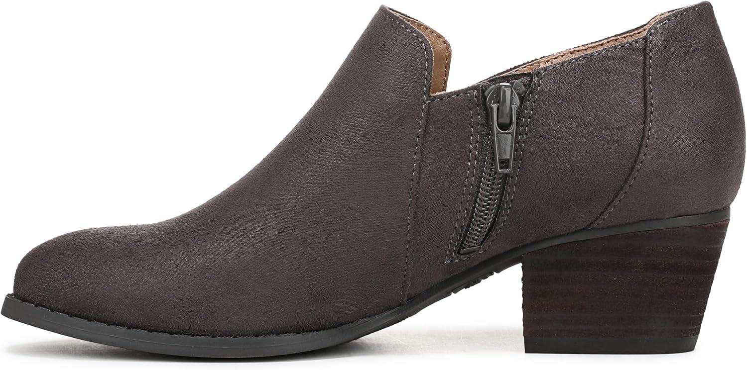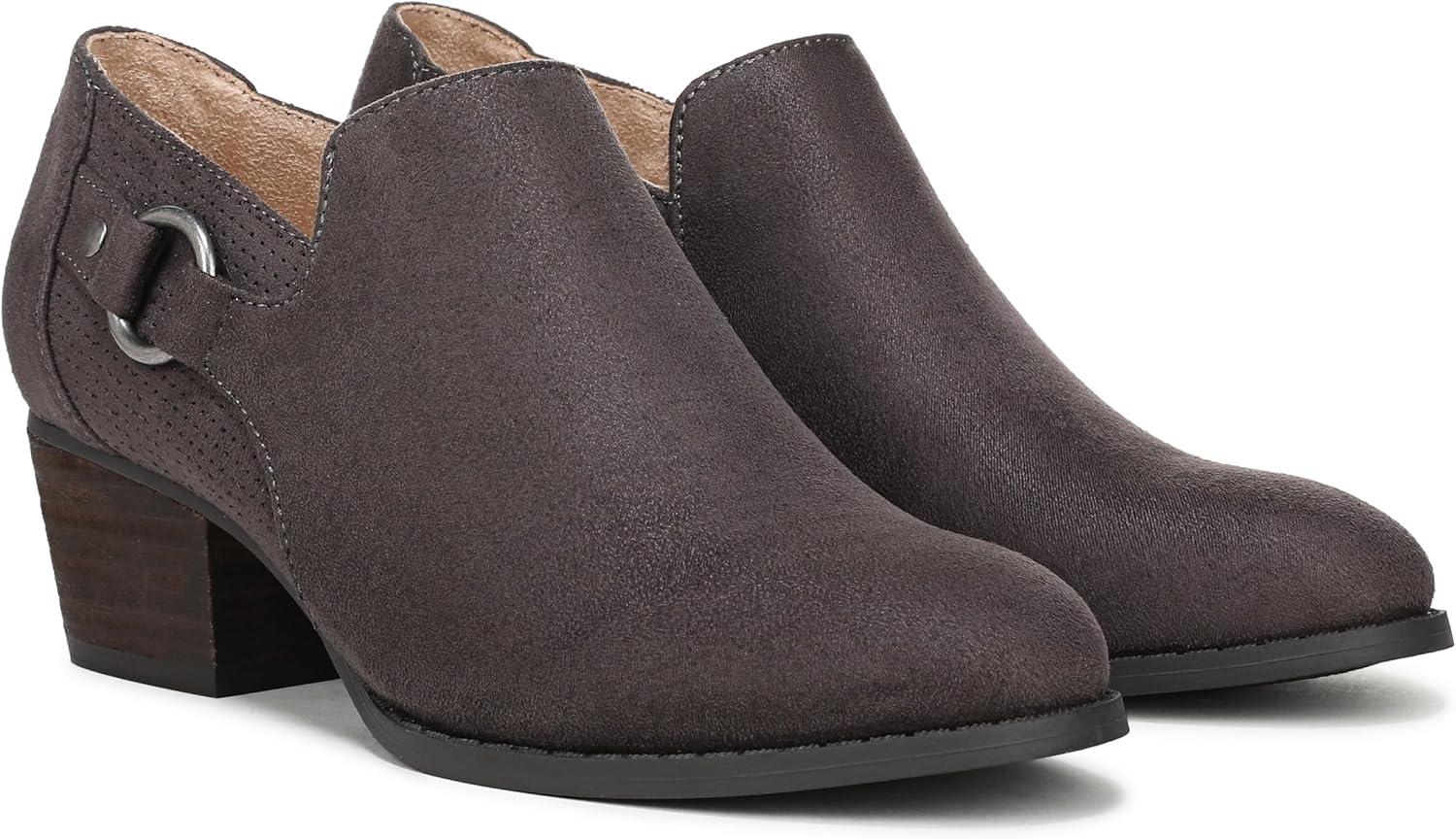 Be ready for anything in these women’s ankle booties with all-day comfort and versatile styling. Mircosuede fabric upper with a round toe, side zipper, and metallic ring detail. Trusted Soft System® comfort technology for unmatched cushion, support, and flexibility in every pair. Traction sole provides you with extra stability. Just Right Height 1 7/8 inch block heel.