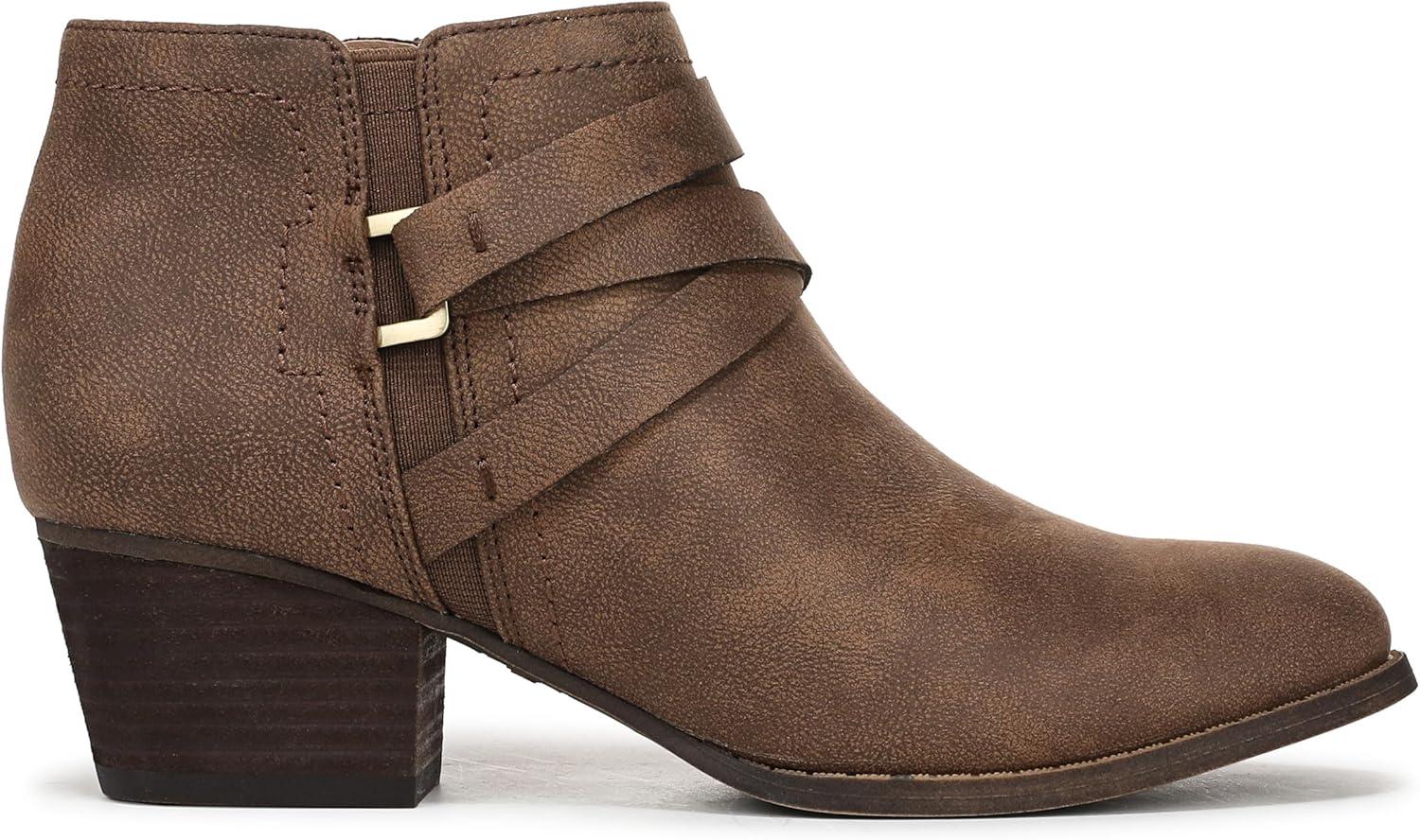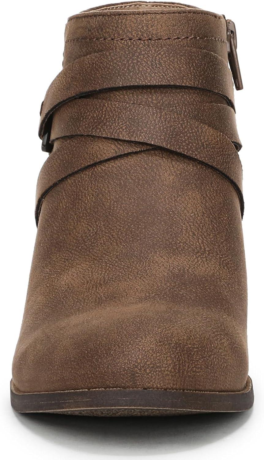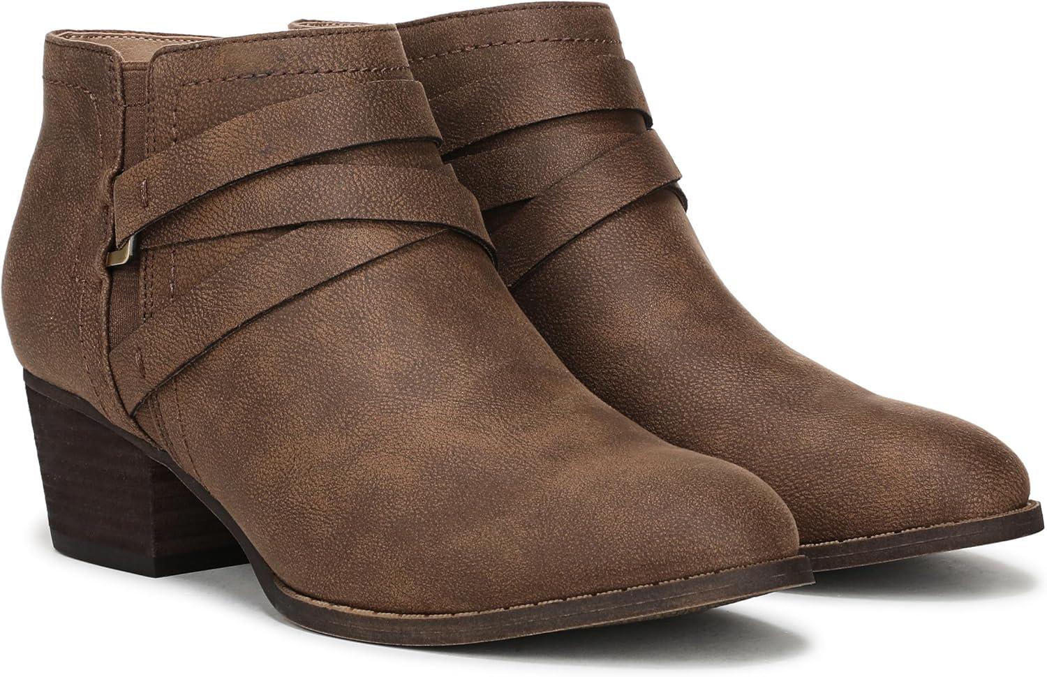 Get ready to style any outfit in these versatile and sophisticated women’s ankle booties. Faux leather with a round toe, inside zipper, metallic hardware accent, and elegant crisscrossing strap detail . Trusted Soft System® comfort technology for unmatched cushion, support, and flexibility in every pair. Traction sole provides you with extra stability. Just Right Height 1 7/8 inch block heel.