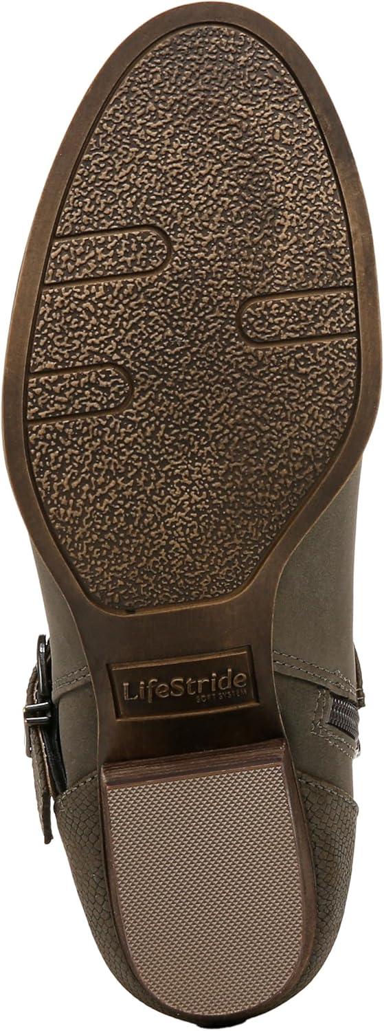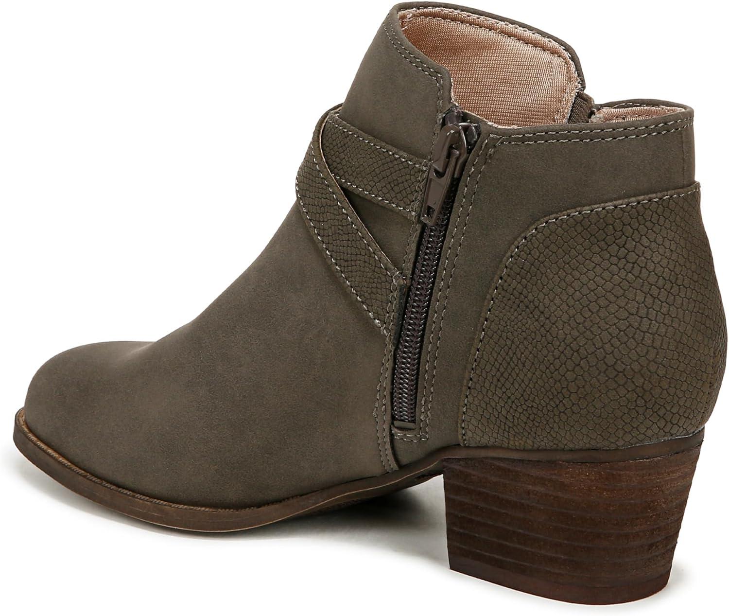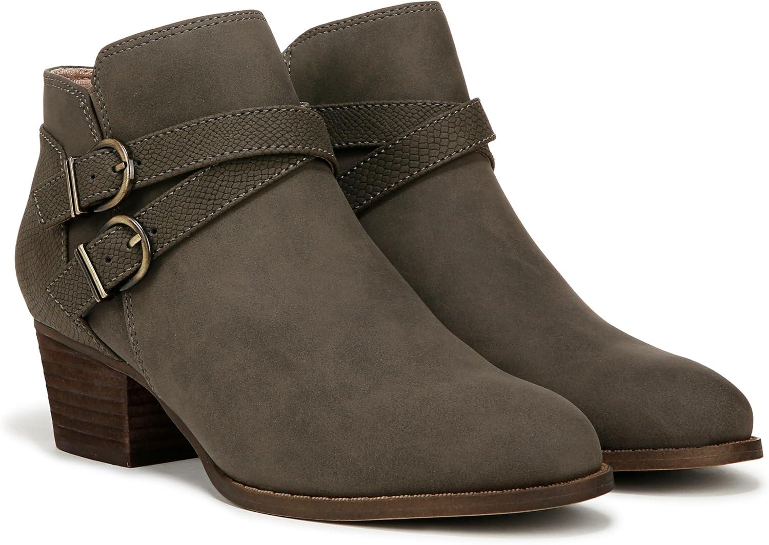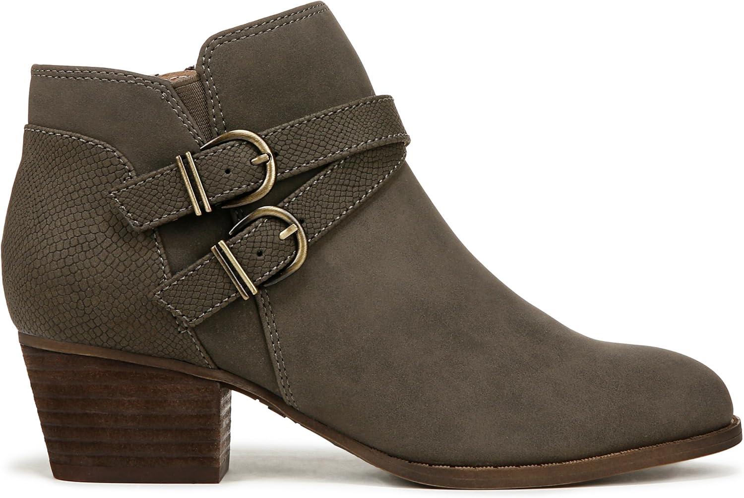Make the Western trend work for your wardrobe in this cool Western ankle boot. Faux leather upper with a round toe, decorative straps with buckle details, built-in stretch, and functional inside zip. Linings partially crafted with recycled materials. Soft System® comfort package provides all-day support, flex, and cushioning. Traction sole provides you with extra stability. Just Right Height 1 7/8 inch stacked block heel.