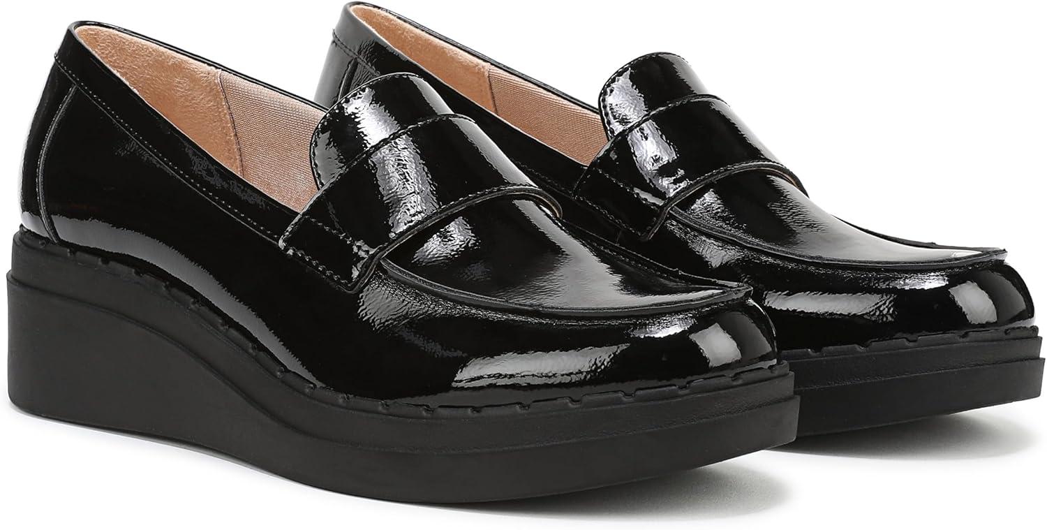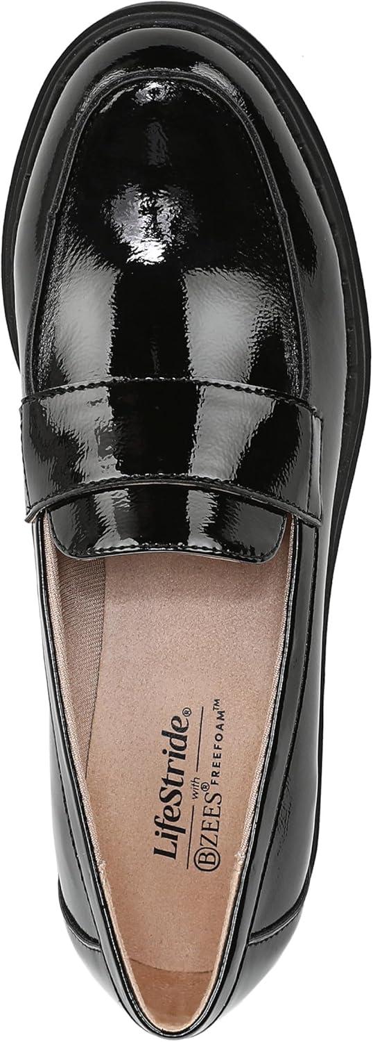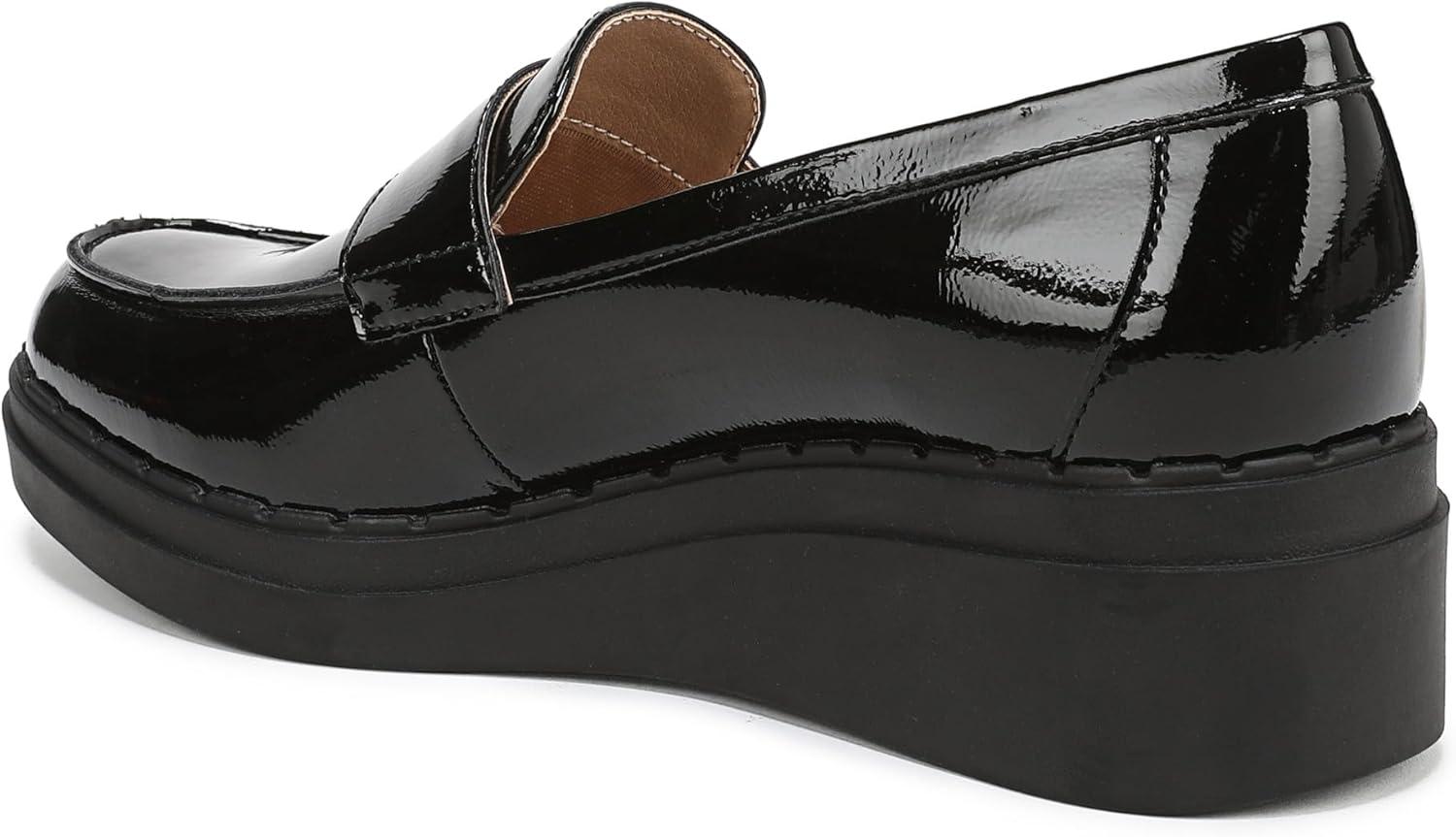 Get now-trending style combined with life-changing comfort in these lightweight platform loafers for women with standout details. Faux leather upper with a round toe, slip-on fit, decorative strap and metallic hardware accent, and comfortable platform sole. Bzees® FreeFoam™ comfort technology for cloud-like cushioning, shock absorption, and an ultra-lightweight feel. Traction sole provides you with extra stability. Just Right Height 2 1/4 inch wedge heel.