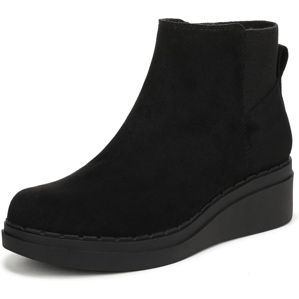 Trending style comes easy in these comfortable wedge ankle boots. Microsuede upper with a round toe, inside zipper, back pull tab, and stretch gore panel for a comfortable fit. Trusted Soft System® comfort technology for unmatched cushion, support, and flexibility in every pair. Shock absorption with pressure distribution and superior cushioning for an effortless feel. Traction sole for extra stability. Just Right Height 2 1/4 inch wedge heel.