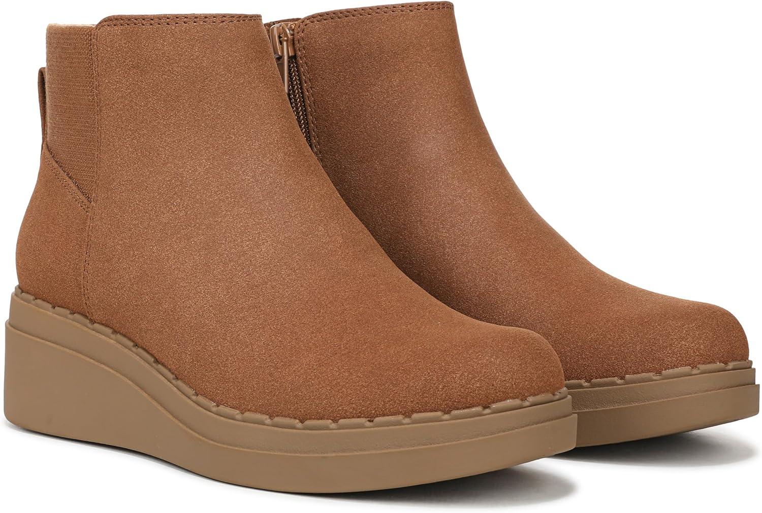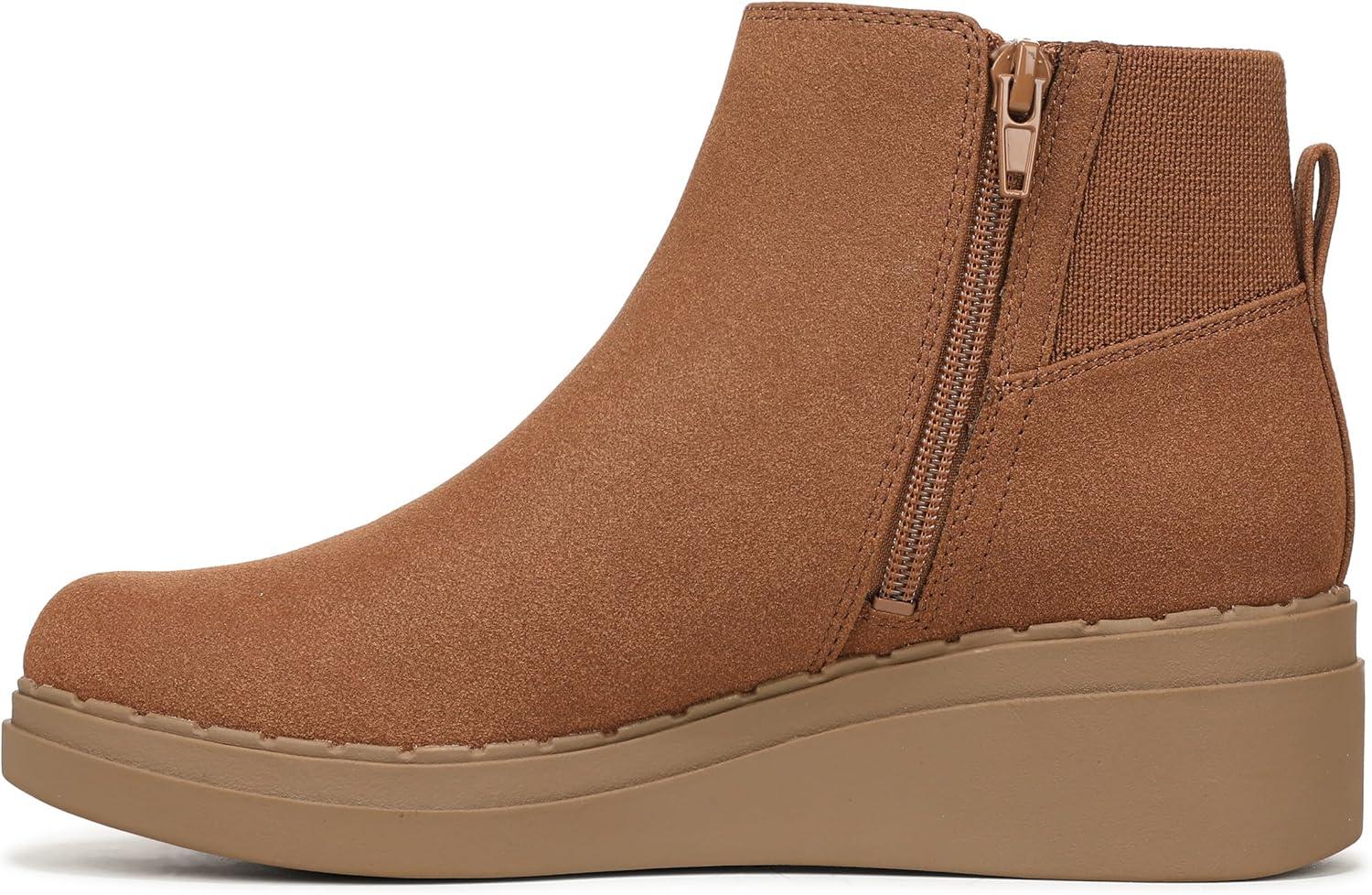 Trending style comes easy in these comfortable wedge ankle boots. Microsuede upper with a round toe, inside zipper, back pull tab, and stretch gore panel for a comfortable fit. Trusted Soft System® comfort technology for unmatched cushion, support, and flexibility in every pair. Shock absorption with pressure distribution and superior cushioning for an effortless feel. Traction sole for extra stability. Just Right Height 2 1/4 inch wedge heel.