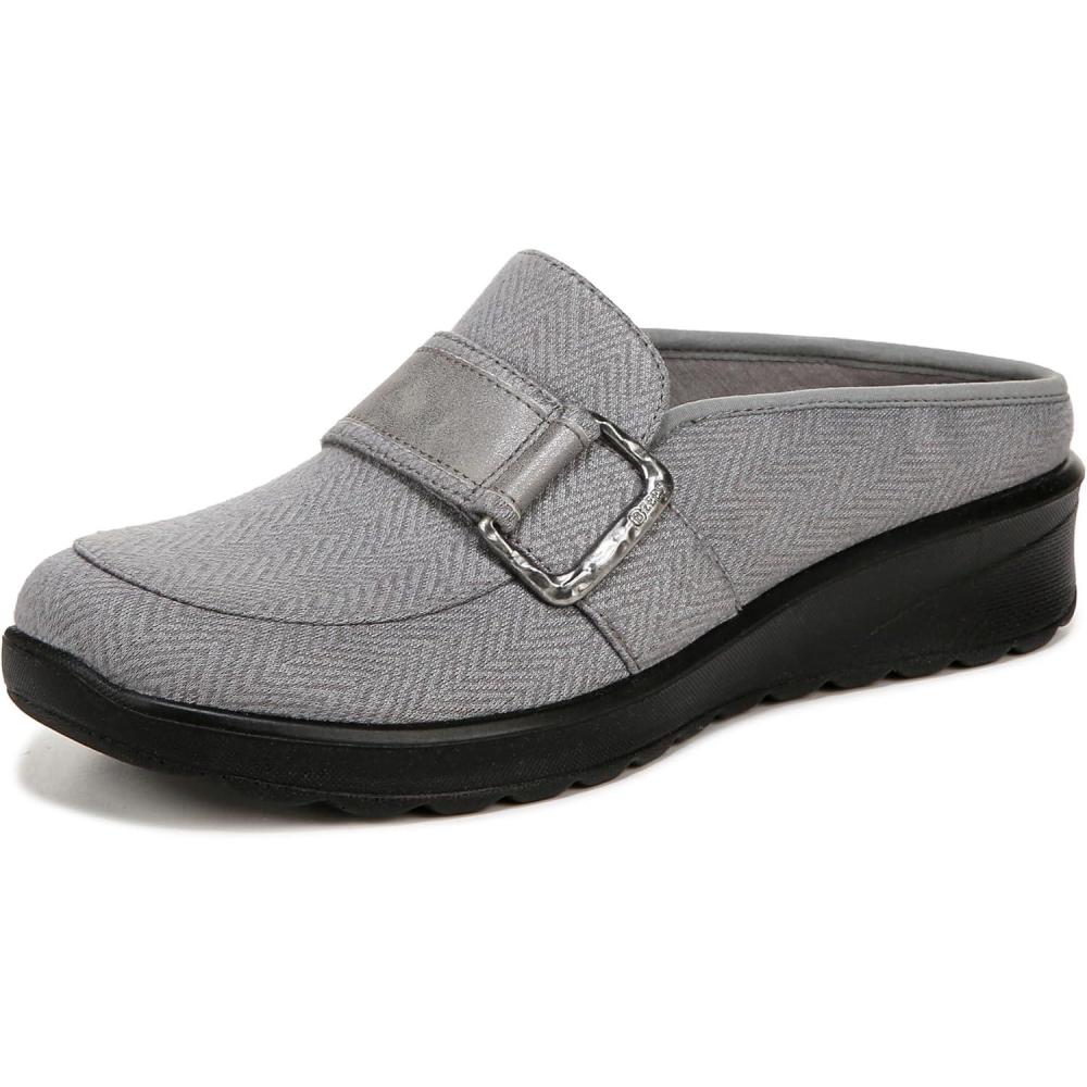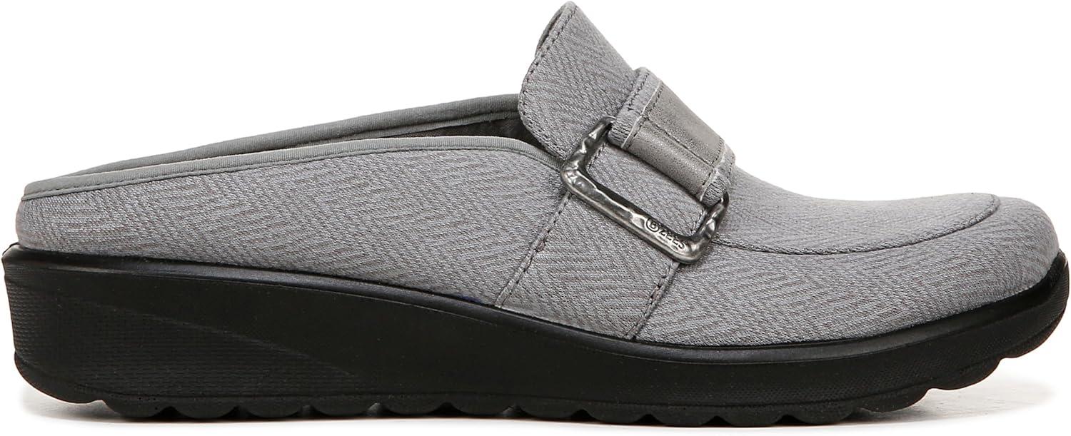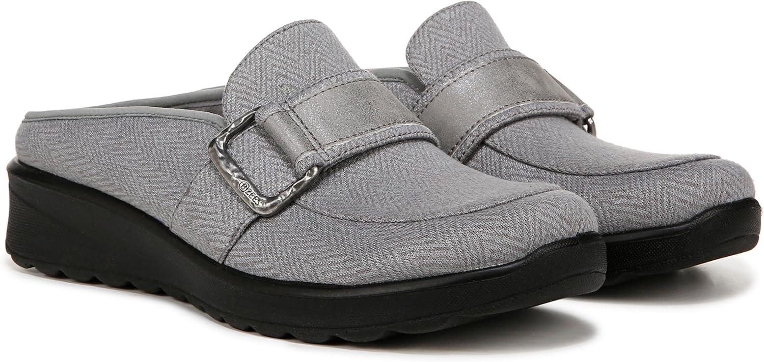 Must-have mules! It feels like you’re walking on clouds when you slip into these versatile clogs. Stretch fabric upper with a round toe and decorative buckle. Slip on fit. BZEES Cloud Technology: Designed so you’ll feel weightless, energized and free. Ultra Lightweight: Step lightly with a nearly weightless feel. Dynamic Stretch Fabrics: Move freely in shoes with built-in stretch. FreeFoam™ Comfort: Low pressure insoles with maximum foot contact and SoCush arch support. 5/8 inch platform, 1 3/8 inch wedge heel. EVA outsole. Get Width It: Countless pairs of Bzees come in wide width shoes for women. Machine Washable: Wash on cold and air dry.