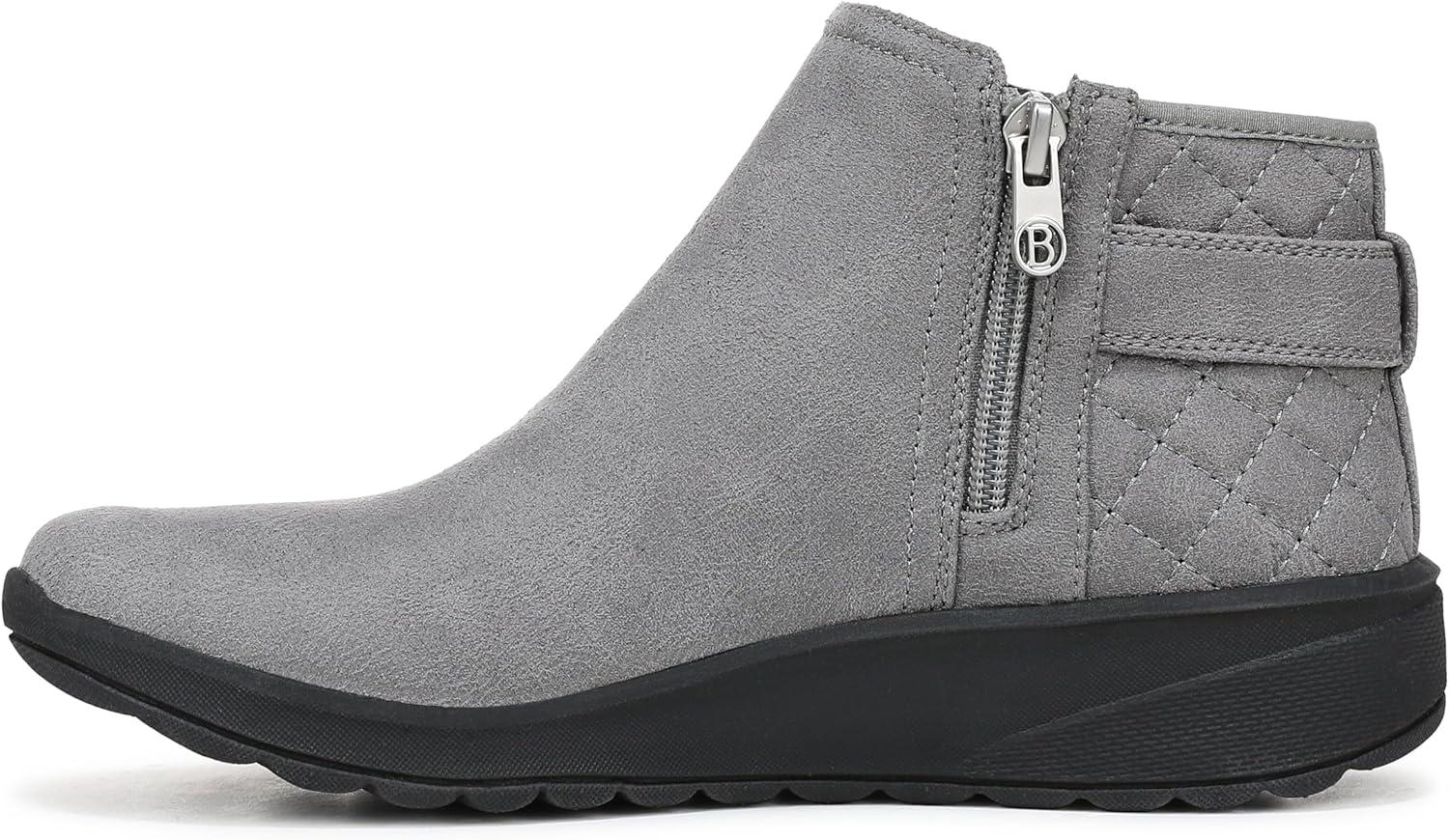 Get life-changing comfort and endless style every day in these casual women’s ankle booties. Stretch knit upper with a round toe, inside zip for easy on/off, decorative strap, and quilted stitch detail. BZEES Air Step Technology: Designed so you’ll feel weightless, energized and free. Ultra Lightweight: Step lightly with a nearly weightless feel. Dynamic Stretch Fabrics: Move freely in shoes with built-in stretch. FreeFoam™ Comfort: Low pressure insoles with maximum foot contact and cushy arch support. Anti-Microbial and Odor Control technology. 3 1/8 inch sole. Machine Washable: Wash on cold and air dry.