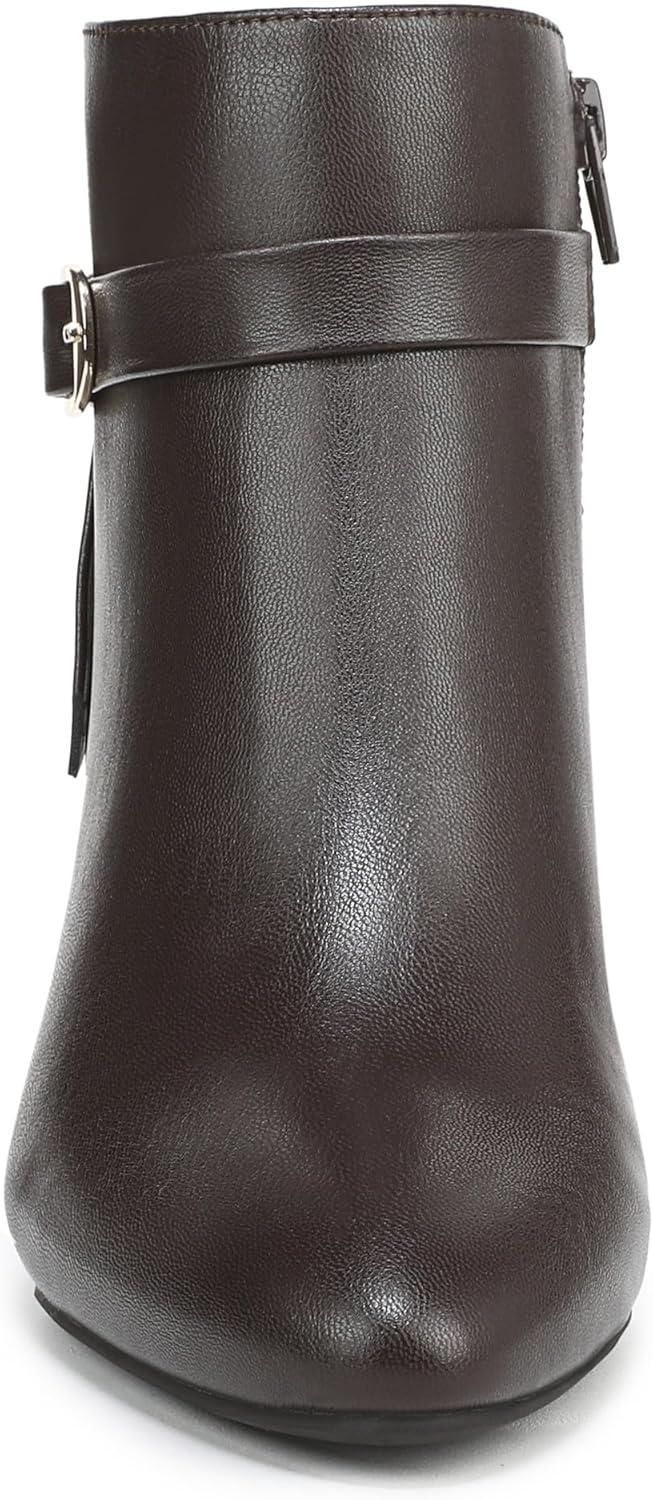 So sleek and chic, you’ll never want to take off this heeled dress bootie with a sophisticated strap and buckle detail. Faux leather upper with an almond toe, inside zip, and decorative strap and buckle detail. Trusted Soft System® comfort technology for unmatched cushion, support, and flexibility in every pair. Traction sole provides you with extra stability. Just Right Height 2 3/4 inch heel.