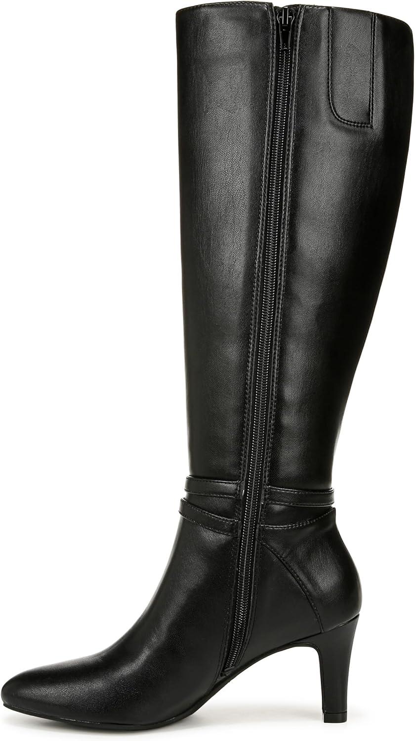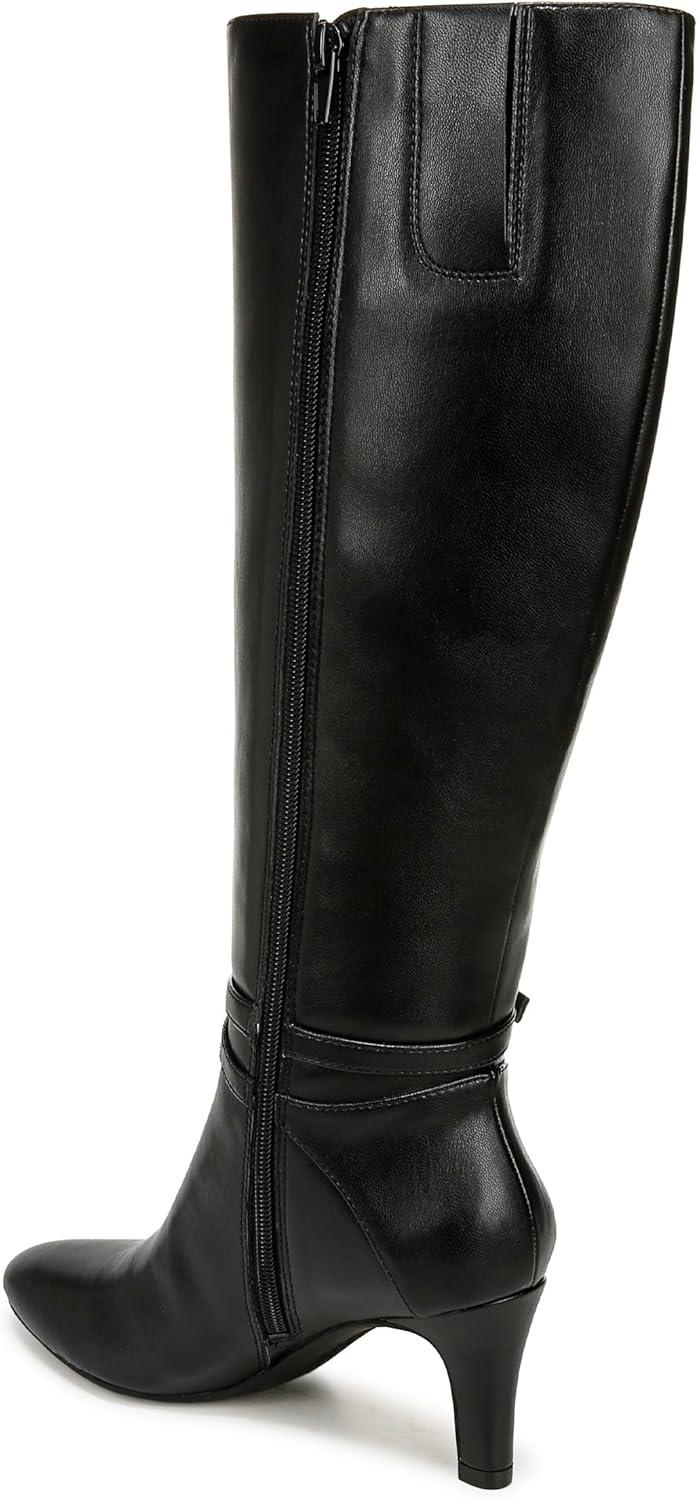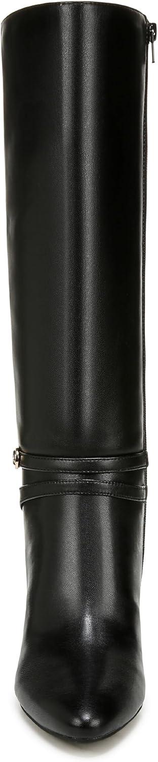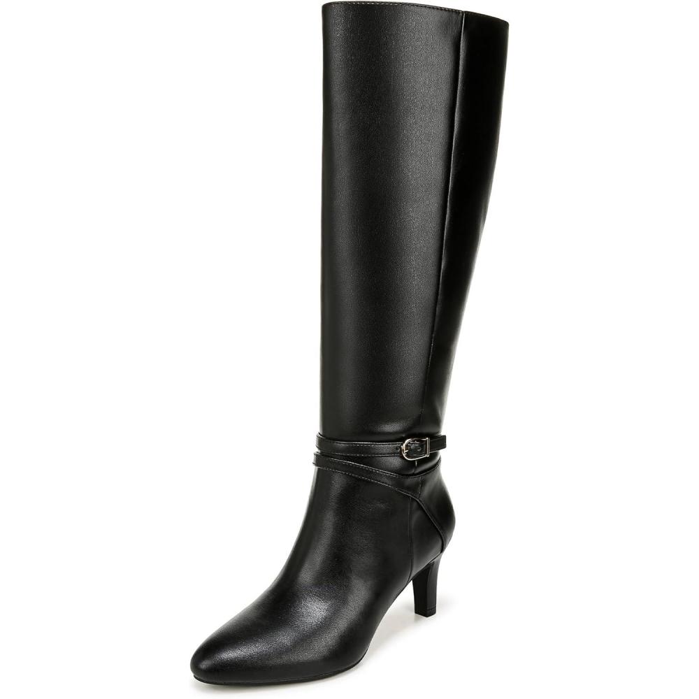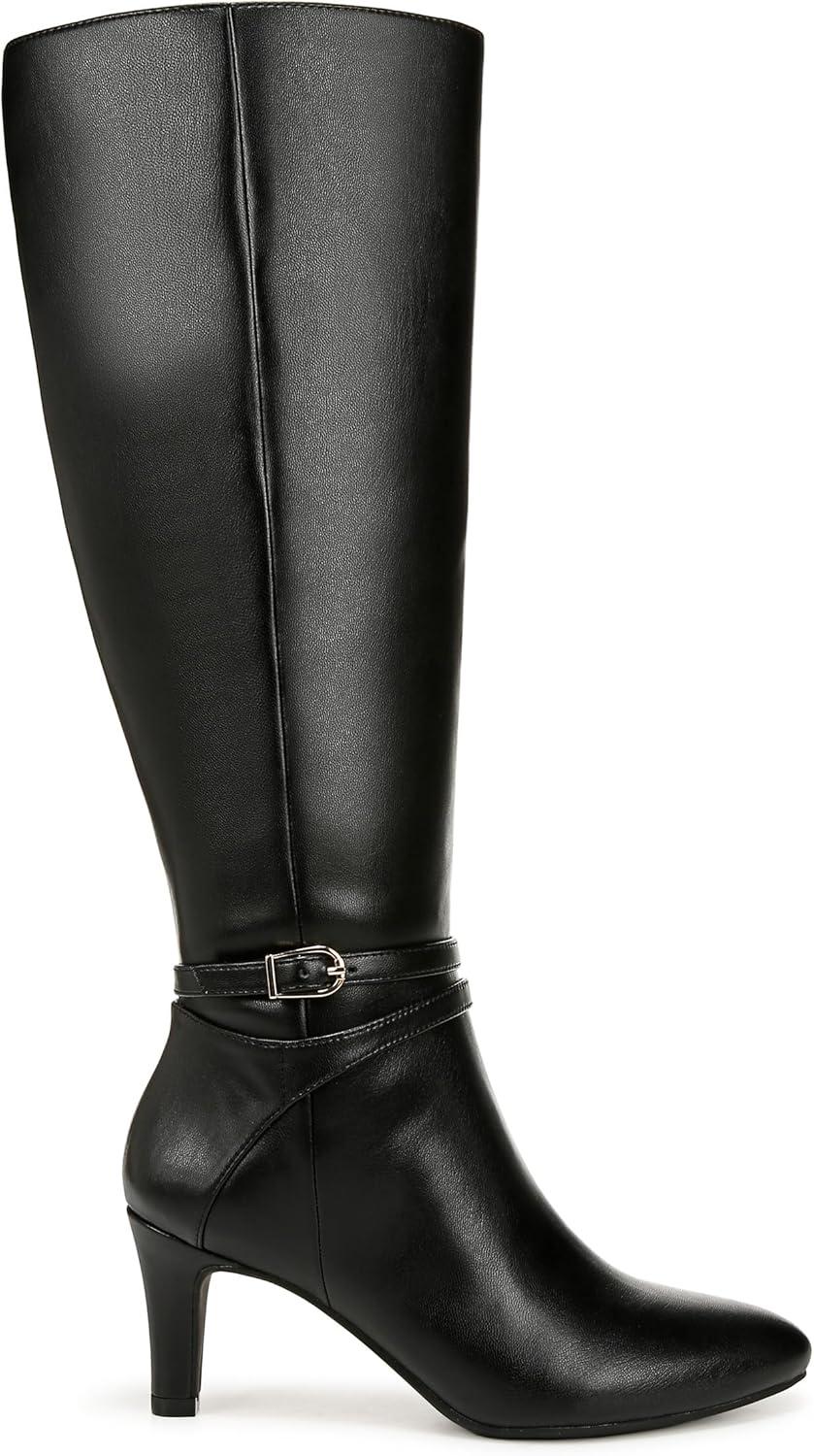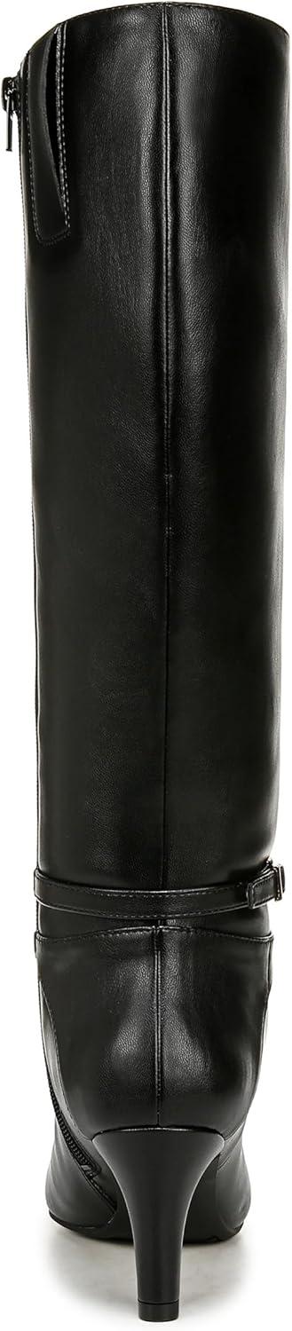 So sleek and chic, these gorgeous tall dress boots with 24/7 comfort will be a new favorite in your closet. Faux leather or microfiber upper with an almond toe, side zip, and wraparound strap and buckle detail. Linings crafted with partially recycled materials. Soft System® comfort package provides all-day support, flex, and cushioning. Traction sole provides you with extra stability. 15 1/8 inch boot height, 14 1/2 inch calf circumference. Note: Measurements based on size 6 boot. For each half size larger, shaft height increases by . 12 in, circumference by . 20 in. Just Right Height 2 3/4 inch heel.