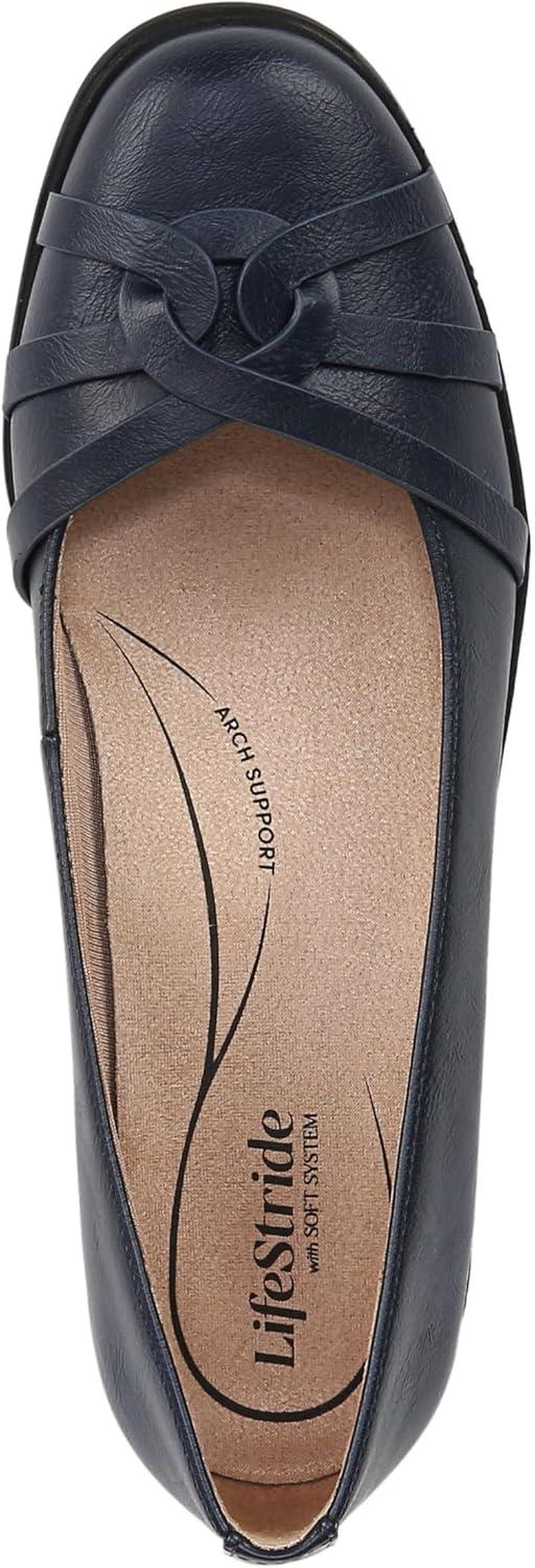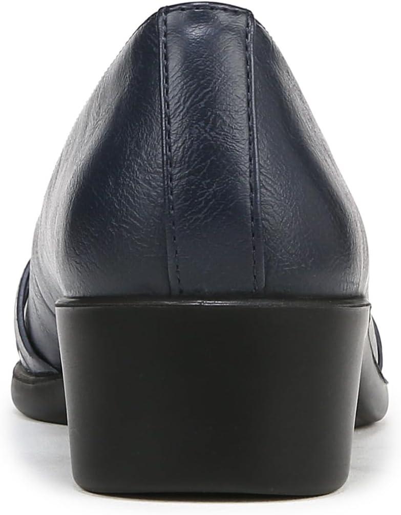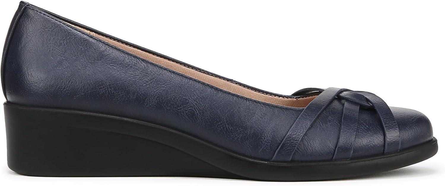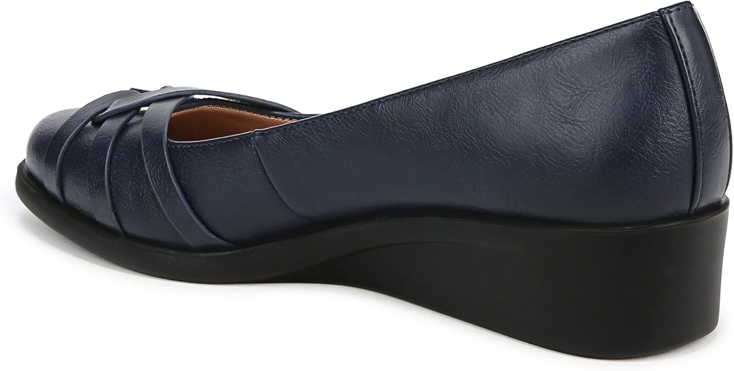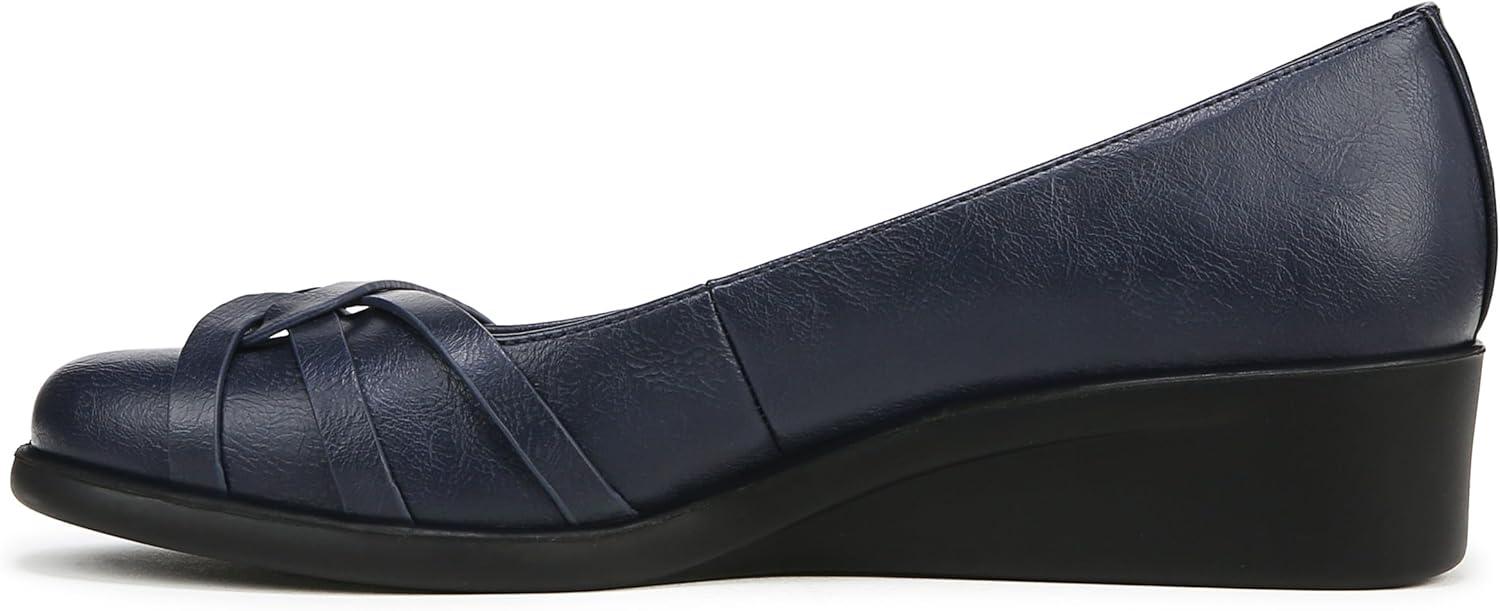 With standout arch support, these wedge heels will keep you happy and looking your best at work, running errands, and beyond. Closed toe wedges designed with faux leather, a round toe, slip-on fit, and interwoven strap detail. Linings crafted from partially recycled materials. Trusted Soft System® comfort technology for unmatched cushion, support, and flexibility in every pair. Exceptional arch support with a contoured, cushioned insole for comfort & stability. Traction sole for extra stability. Just Right Height 1 5/8 inch wedge heel.