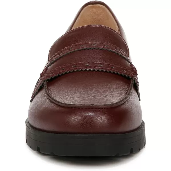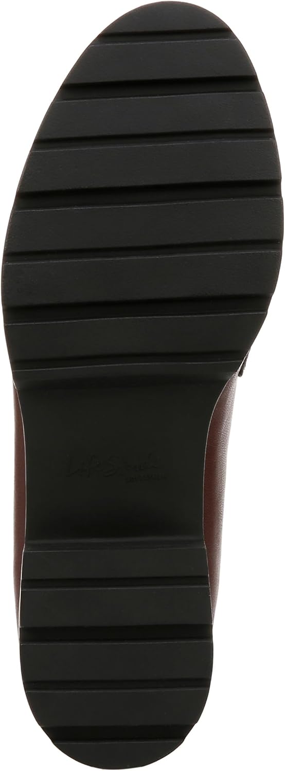 Step into timelessness. A casual penny loafer like this belongs in your cart and on your feet. Faux leather upper with a rounded toe, slip-on fit, stitched details, and lug sole. Vamp and sock lining, toe box and heel counter partially crafted with recycled materials. Soft System® comfort package provides all-day support, flex, and cushioning. Traction platform sole provides you with extra stability. Just Right Height 1 and 1/4 inch block heel.