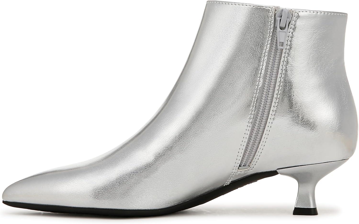 With a now-trending sculpted kitten heel, these ankle boots for women look gorgeous and feel incredibly comfortable. Faux leather upper with a softly pointed toe, side zipper for easy on/off, and trending kitten heel. Linings crafted with partially recycled materials. Soft System® comfort package provides all-day support, flex, and cushioning. Traction sole provides you with extra stability. Just Right Height 1 5/8 inch heel.
