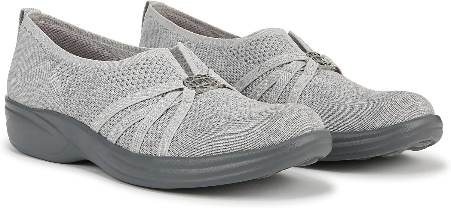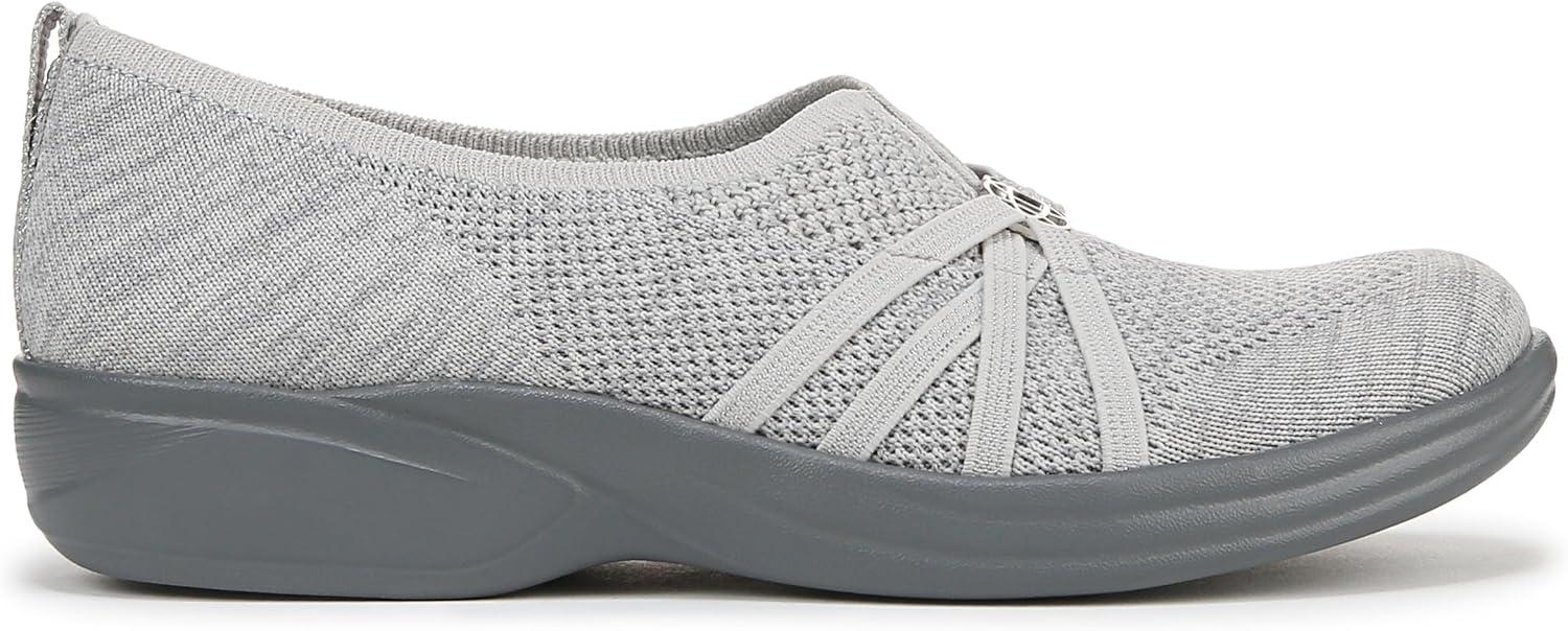 Who doesn’t love the Niche slip-on?! Refreshed with cool details, you’ll find every reason to make these your favorite too. Stretch engineered knit upper with partially recycled linings and a round toe. Strappy detail, metallic ornamentation and back pull tab. BZEES Air Step Technology: Designed so you’ll feel weightless, energized and free. Ultra Lightweight: Step lightly with a nearly weightless feel. Dynamic Stretch Fabrics: Move freely in shoes with built-in stretch. FreeFoam™ Comfort: Low pressure insoles with maximum foot contact and cushy arch support. Comfort Cone Gel: Get that extra “ahhhhh factor” with heel impact shock absorption and cushioning in all the right places. Odor Control technology. 1 1/2 inch platform, 1 3/8 inch heel. Get Width It: Countless pairs of Bzees come in wide width shoes for women. Machine Washable: Wash on cold and air dry.