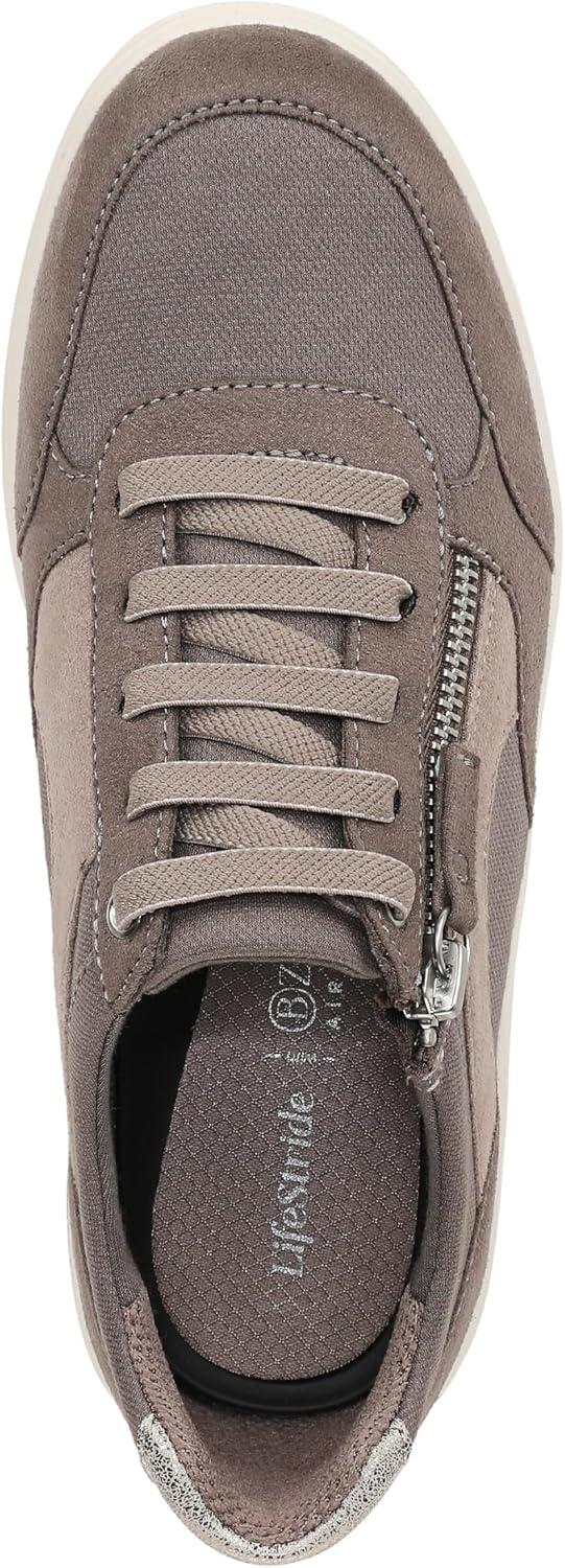 Where sporty meets stress-free! Ease into these slip on sneakers with faux laces and a zipper. Stretch knit fabric or mesh fabric upper with a round toe and faux laces. Comfort collar with extra padding around the heel. BZEES Air Step Technology: Designed so you’ll feel weightless, energized and free. Ultra Lightweight: Step lightly with a nearly weightless feel. Dynamic Stretch Fabrics: Move freely in shoes with built-in stretch. FreeFoam™ Comfort: Low pressure insoles with maximum foot contact and cushy arch support. Anti-Microbial and Odor Control technology. 1 3/8 inch heel. Machine Washable: Wash on cold and air dry.