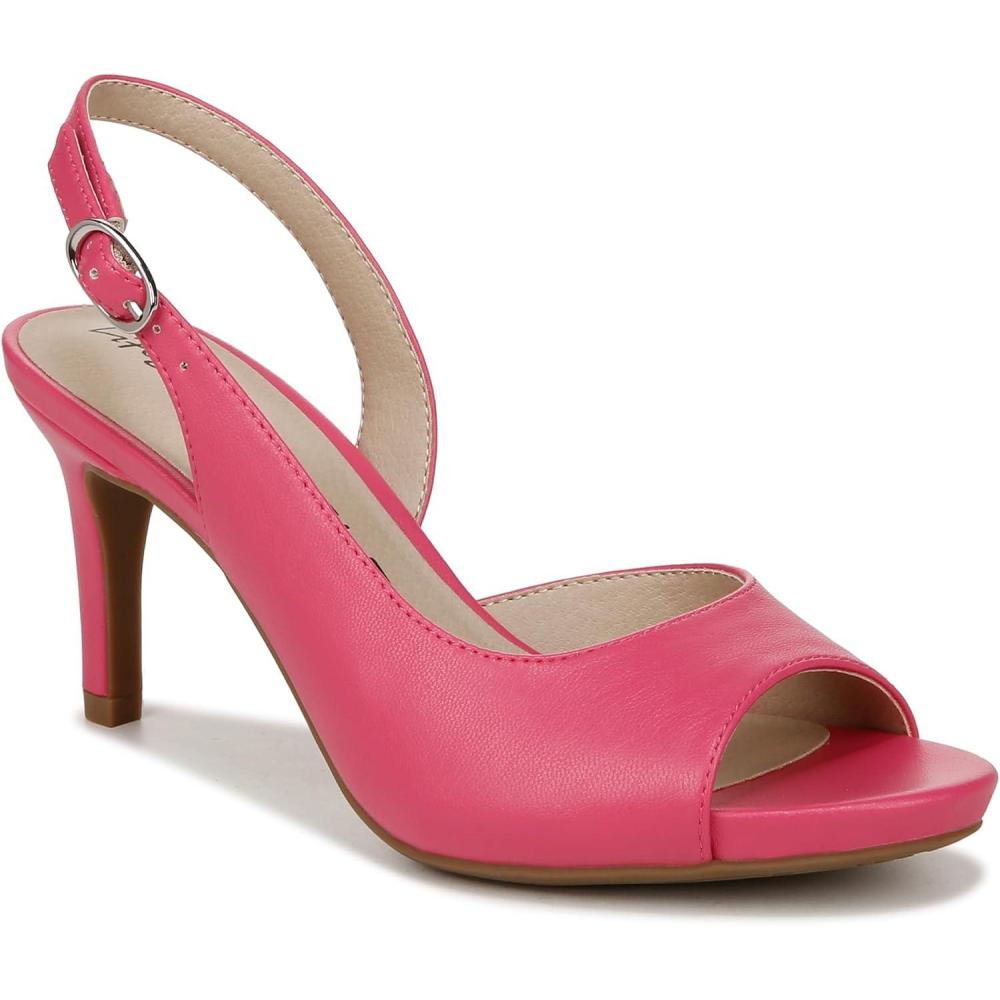 Walk into the room and own it with this stunning slingback pump. Faux leather with an open almond toe, heel sling strap with built-in stretch, and adjustable buckle closure. Soft System® comfort package provides all-day support, flex, and cushioning. Fab Flex tech with a super flexible, ultra-padded platform heel for ultimate comfort. Traction sole for extra stability. Just Right Height 3 inch heel.