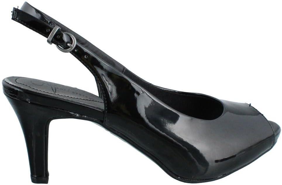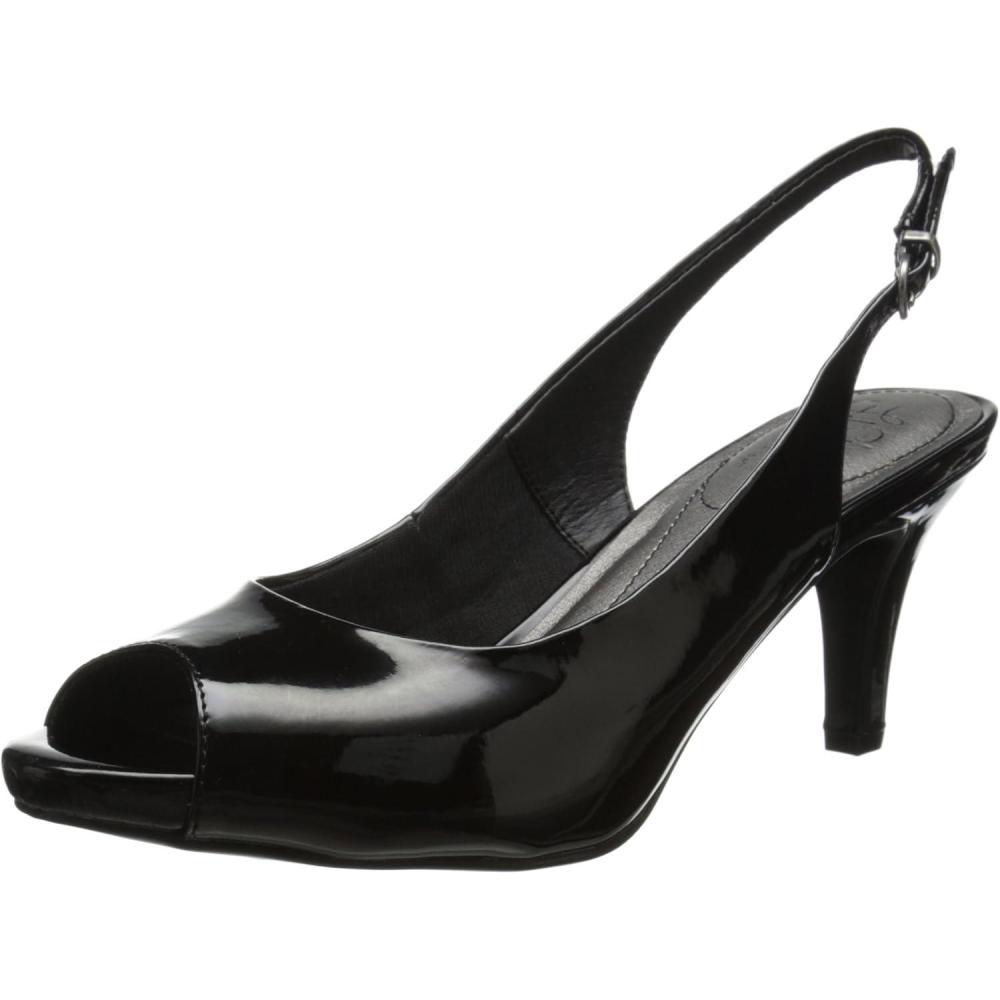 Walk into the room AND own it. Faux leather or fabric upper with a peep toe, heel sling strap and adjustable buckle closure.