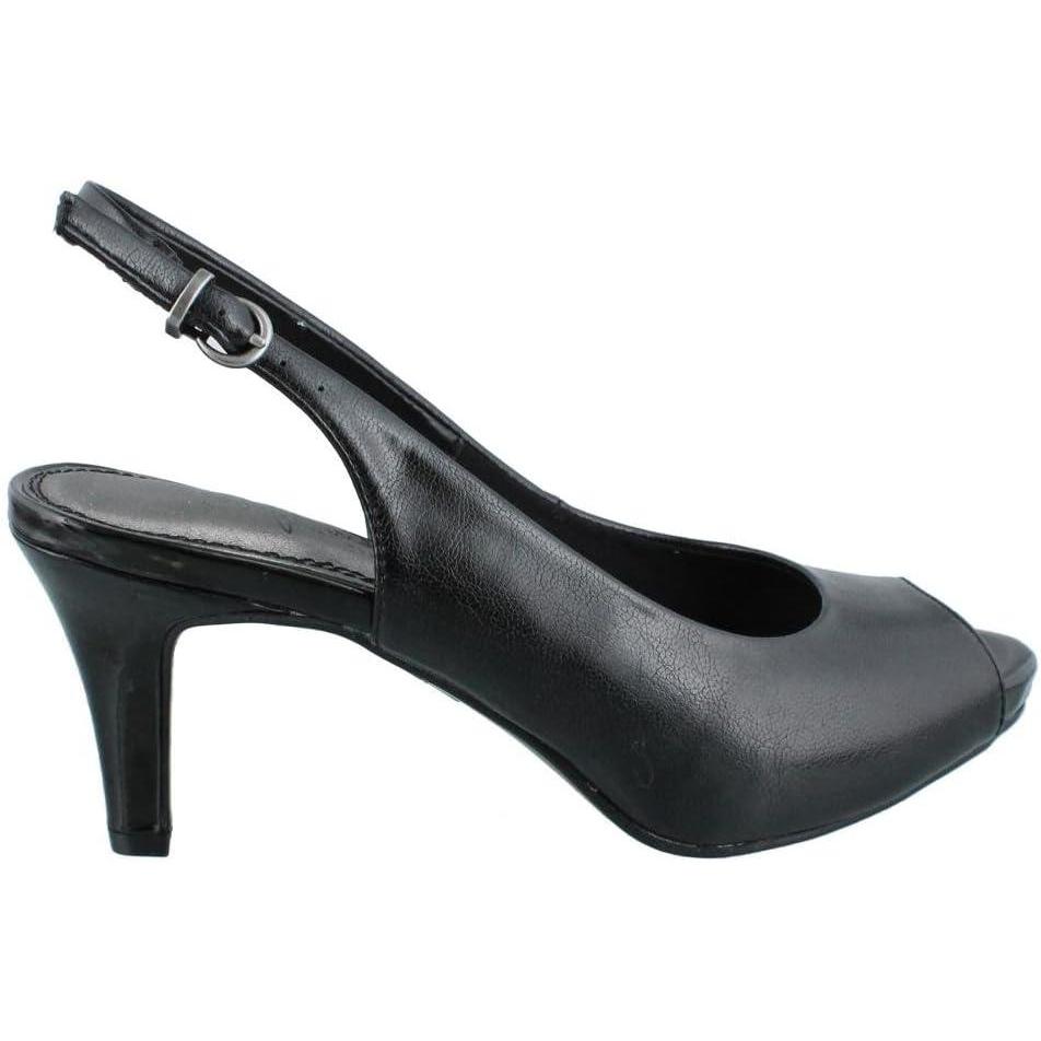 Walk into the room AND own it. Faux leather or fabric upper with a peep toe, heel sling strap and adjustable buckle closure.
