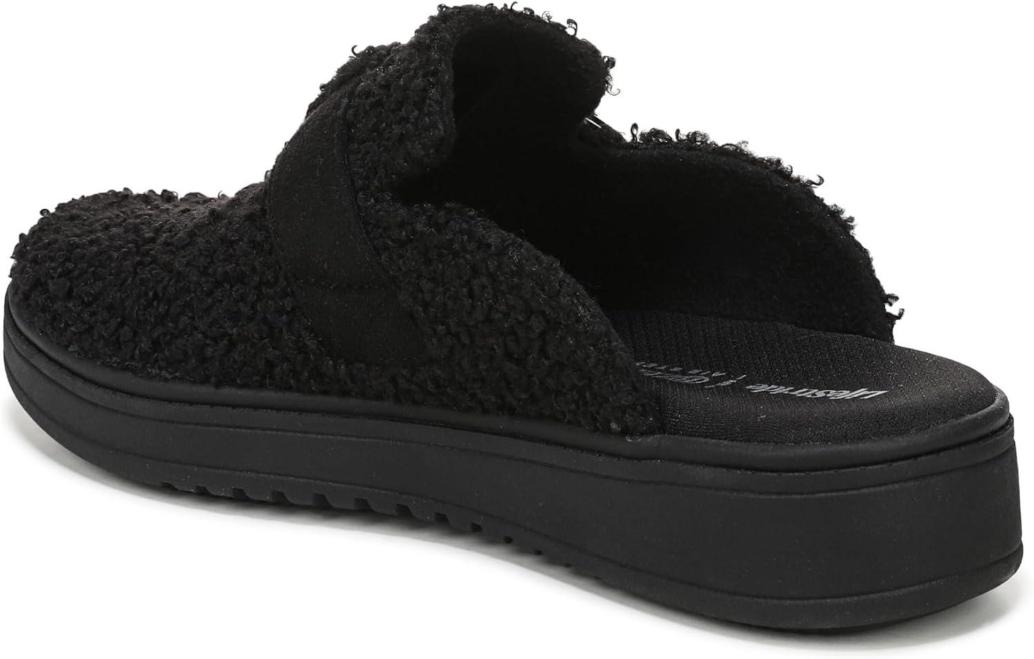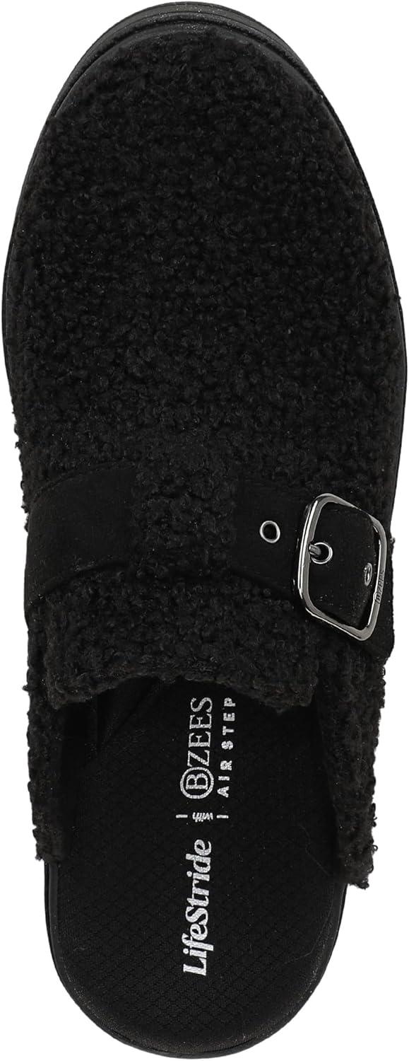 Feel all the warm and fuzzies in these machine-washable, cozy-casual mules. Stretch fabric and faux shearling upper with a round toe, easy slip-on fit, and decorative strap and buckle detail. BZEES Air Step Technology: Designed so you’ll feel weightless, energized and free. Ultra Lightweight: Step lightly with a nearly weightless feel. Dynamic Stretch Fabrics: Move freely in shoes with built-in stretch. FreeFoam™ Comfort: Low pressure insoles with maximum foot contact and cushy arch support. Anti-Microbial and Odor Control technology. 1 5/8 inch sole. Machine Washable: Wash on cold and air dry.