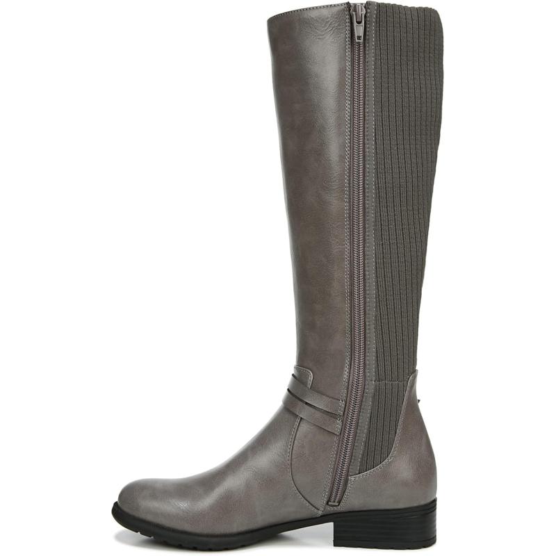 Cozy meets contemporary in the super comfortable, super stylish x-anita riding boot from LifeStride. Faux leather upper with a round toe, side zip closure, stretch knit back panel, and decorative straps with metallic ornamentation. Soft system® comfort package provides all-day support, flex, and cushioning. Traction sole provides you with extra stability. Just right height 1 and 1/4 inch heel.