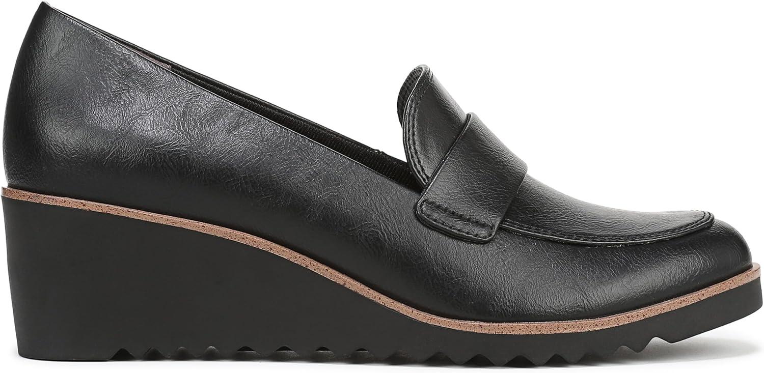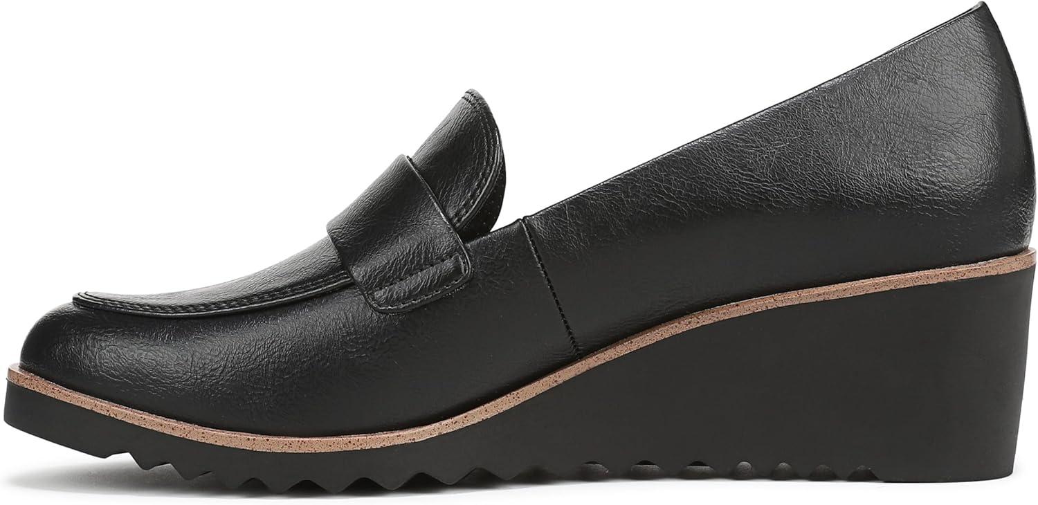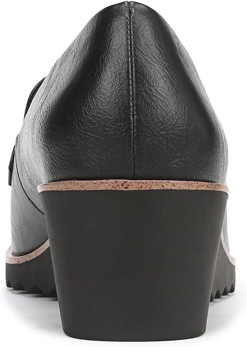 Slip into perfectly elevated and tailored style in these comfortable wedge heels. Faux leather with a round toe, slip-on fit, decorative strap, tread sole, and lightweight and flexible design. Trusted Soft System® comfort technology for unmatched cushion, support, and flexibility in every pair. Shock absorption with pressure distribution and superior cushioning for an effortless feel. Traction sole provides you with extra stability. Just Right Height 2 inch wedge heel.