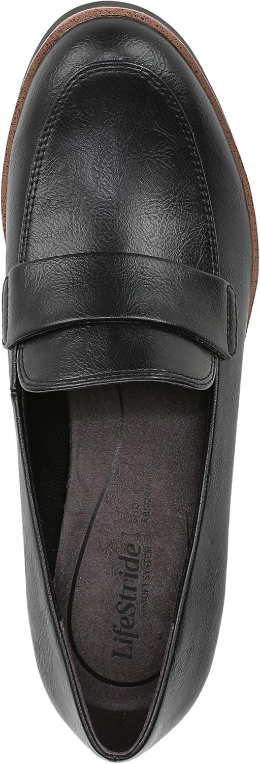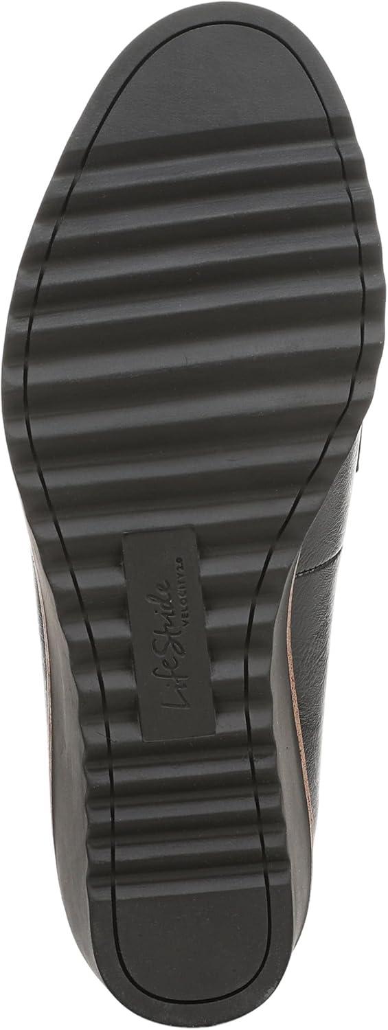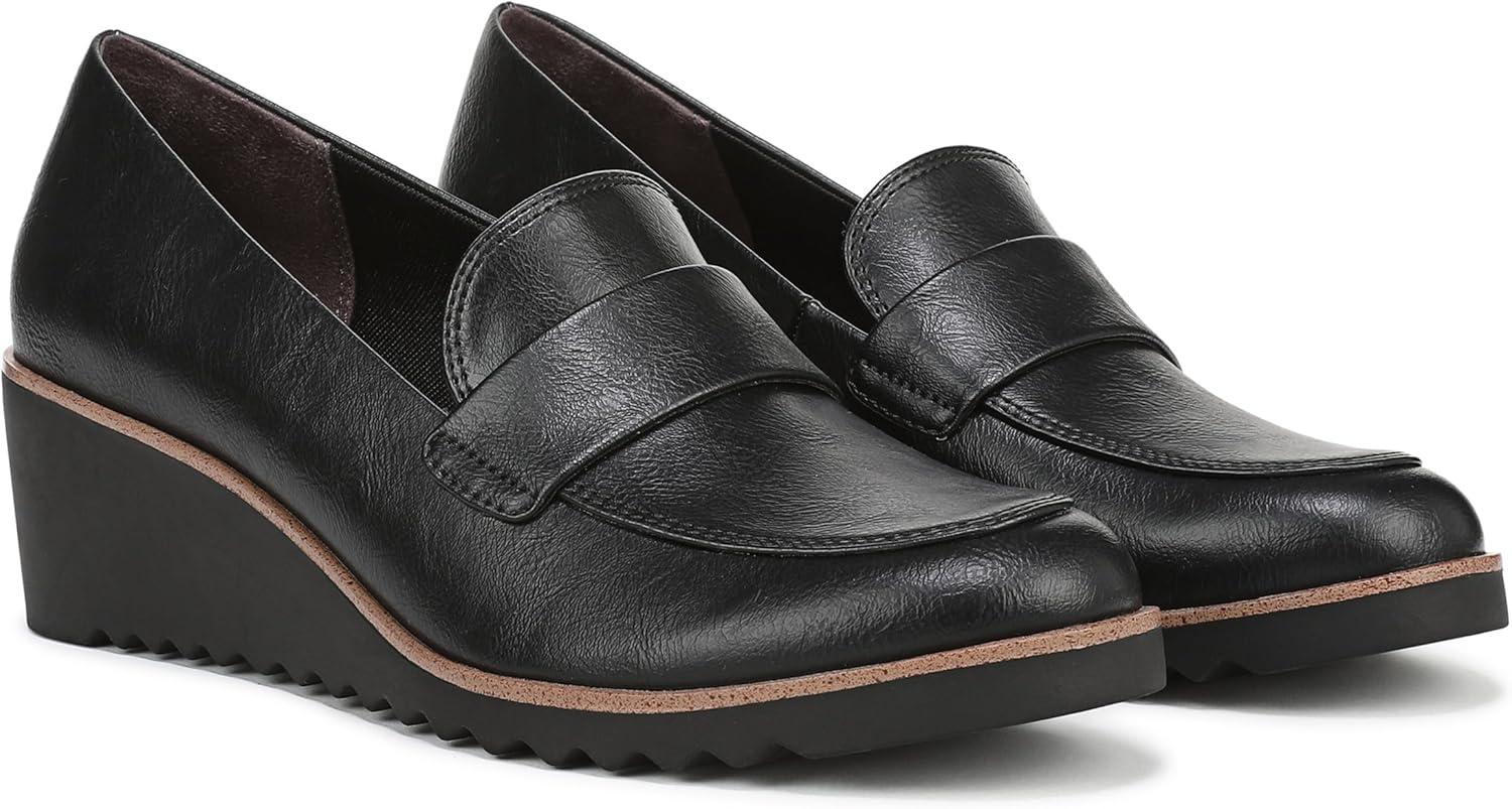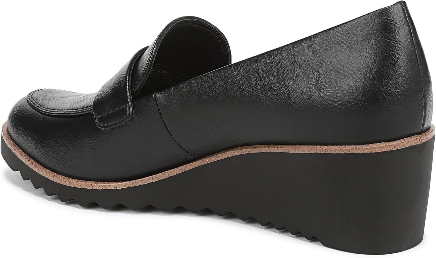 Slip into perfectly elevated and tailored style in these comfortable wedge heels. Faux leather with a round toe, slip-on fit, decorative strap, tread sole, and lightweight and flexible design. Trusted Soft System® comfort technology for unmatched cushion, support, and flexibility in every pair. Shock absorption with pressure distribution and superior cushioning for an effortless feel. Traction sole provides you with extra stability. Just Right Height 2 inch wedge heel.