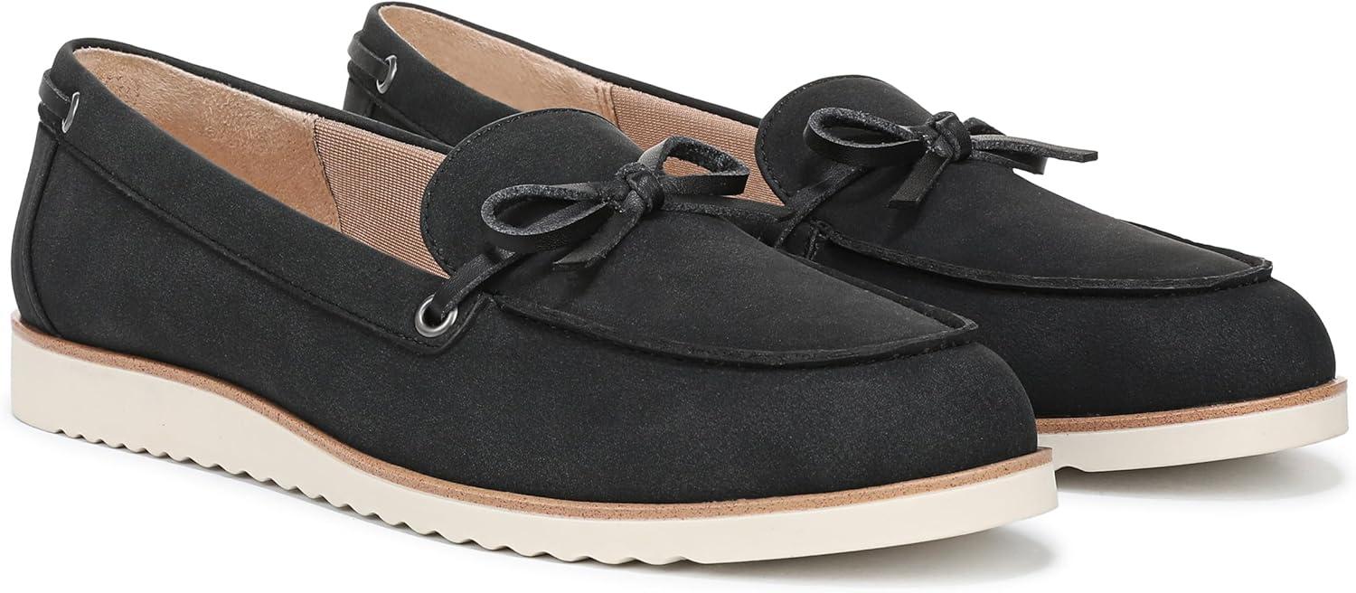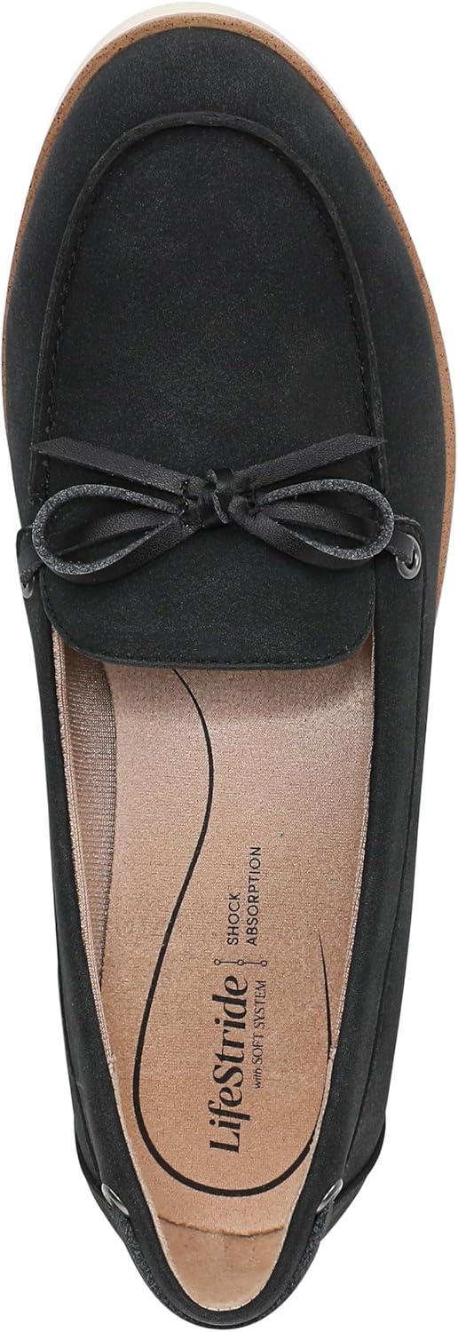 ALL-DAY COMFORT: Trusted Soft System technology delivers unmatched cushioning, superior arch support, and flexibility, making these women's loafers ideal as comfortable work shoes or for everyday wear EFFORTLESS STYLE: Timeless slip-on loafer design features a faux suede upper with an elegant bow detail and subtle stitching, perfect for elevating any casual or work outfit SECURE, EASY FIT: Slip-on style ensures these women's slip on shoes are easy to wear, while the almond toe and tailored silhouette offer a flattering, versatile look STABLE TRACTION: Durable TPR sole provides reliable traction and extra stability for confident steps, whether you're headed to the office or out on the weekend LOW PROFILE HEEL: Just-right 3/4 inch heel height offers lasting comfort and arch support—perfect for those seeking women's comfort shoes, slip on walking shoes, or slip on casual shoes