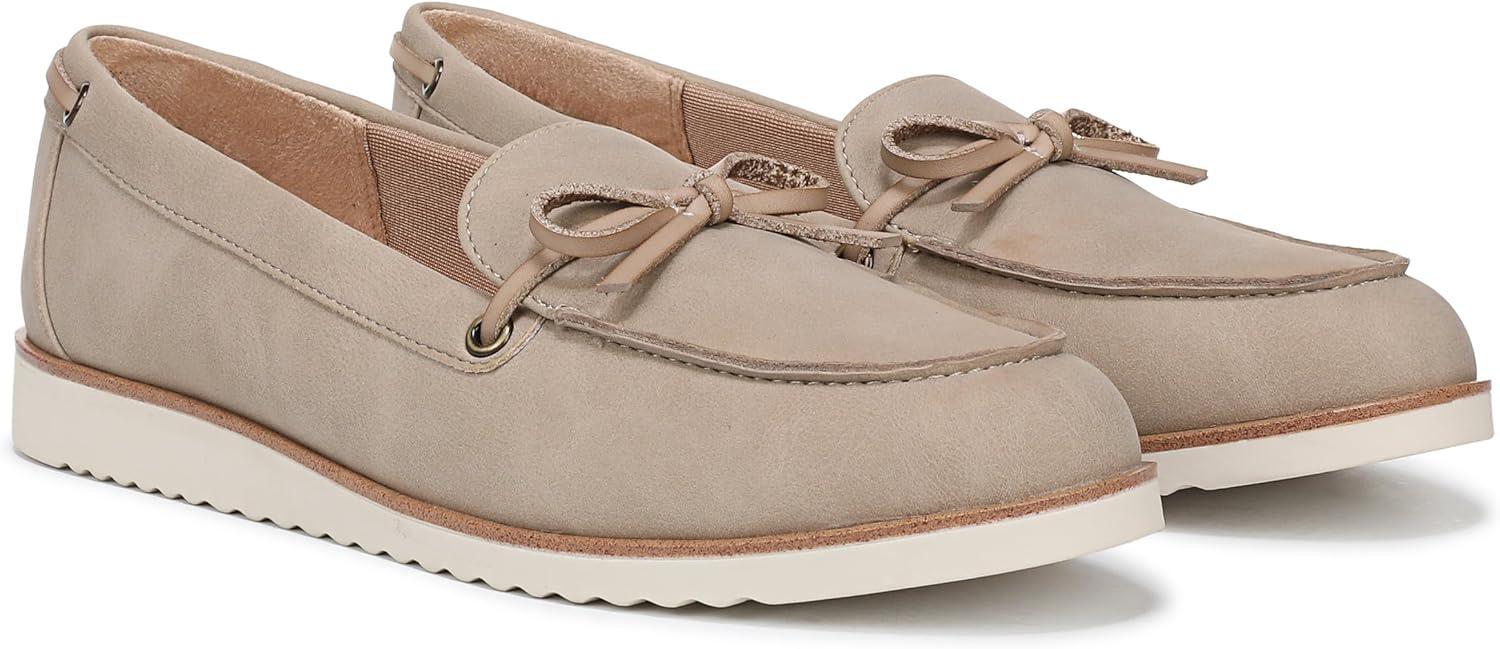 ALL-DAY COMFORT: Trusted Soft System technology delivers unmatched cushioning, superior arch support, and flexibility, making these women's loafers ideal as comfortable work shoes or for everyday wear EFFORTLESS STYLE: Timeless slip-on loafer design features a faux suede upper with an elegant bow detail and subtle stitching, perfect for elevating any casual or work outfit SECURE, EASY FIT: Slip-on style ensures these women's slip on shoes are easy to wear, while the almond toe and tailored silhouette offer a flattering, versatile look STABLE TRACTION: Durable TPR sole provides reliable traction and extra stability for confident steps, whether you're headed to the office or out on the weekend LOW PROFILE HEEL: Just-right 3/4 inch heel height offers lasting comfort and arch support—perfect for those seeking women's comfort shoes, slip on walking shoes, or slip on casual shoes